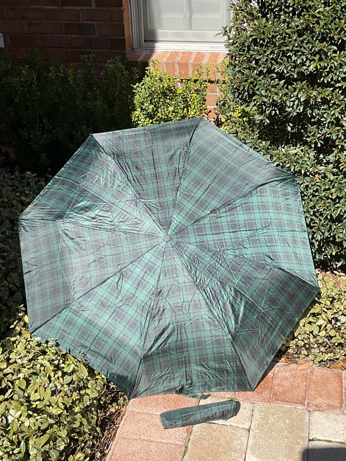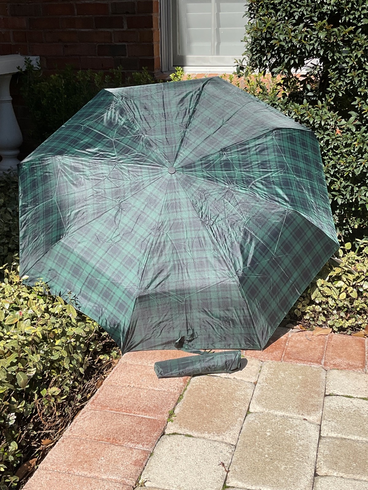 LONDON FOG UMBRELLA NAVY BLUE GREEN CHECK MANUAL OPEN SUPER OPEN NWT