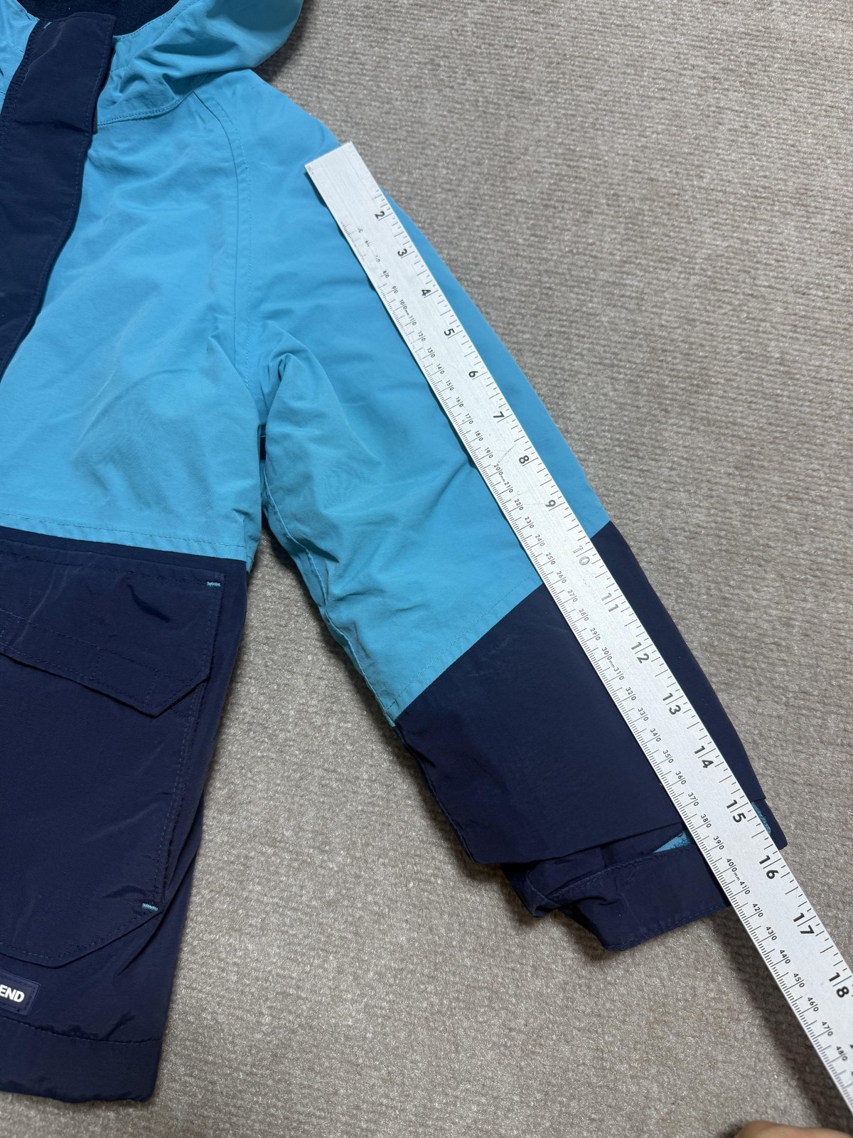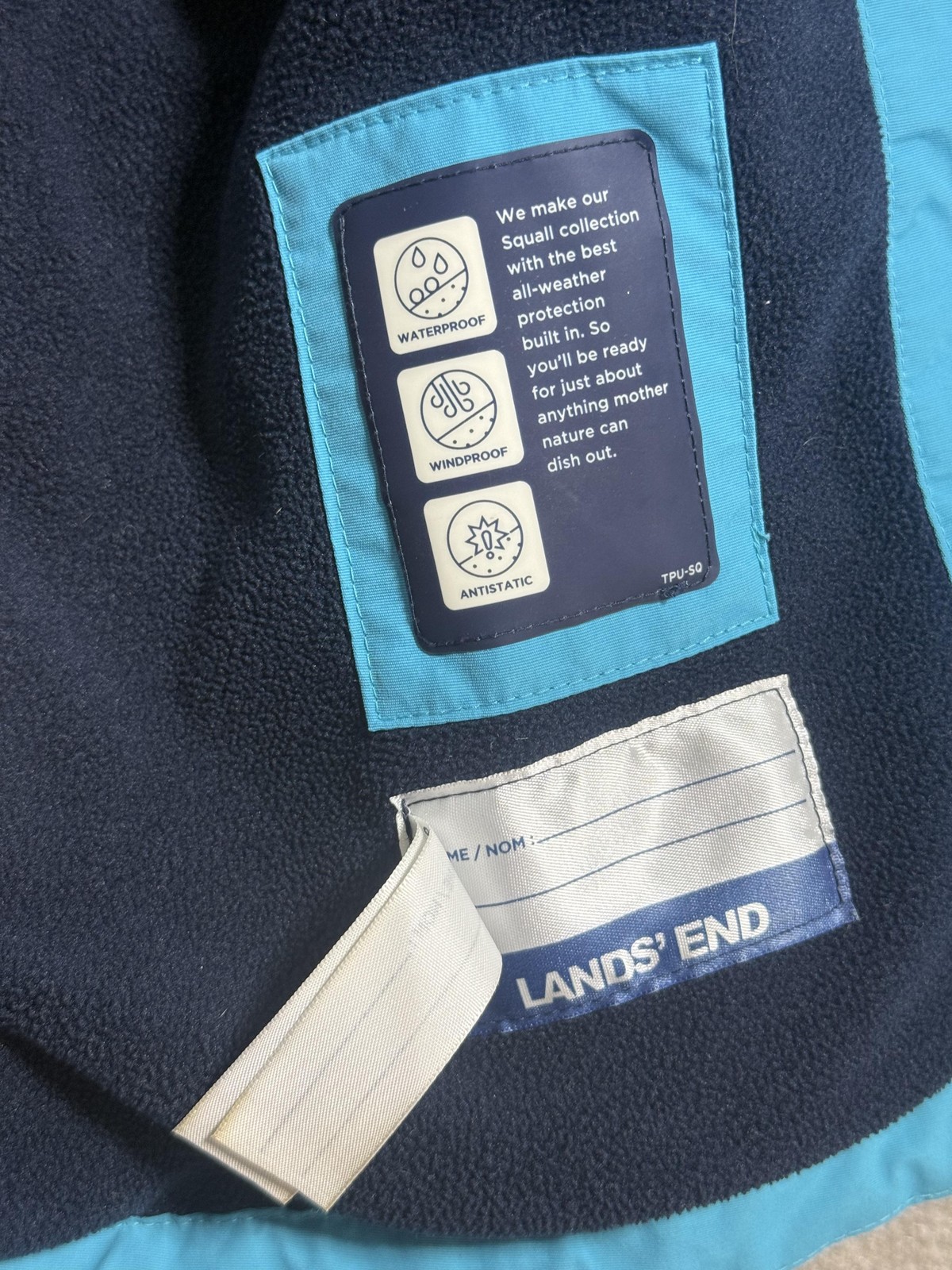 как выглядит Lands End Ski Jacket Youth 8 Blue Colorblock Squall Hooded Waterproof Insulated фото