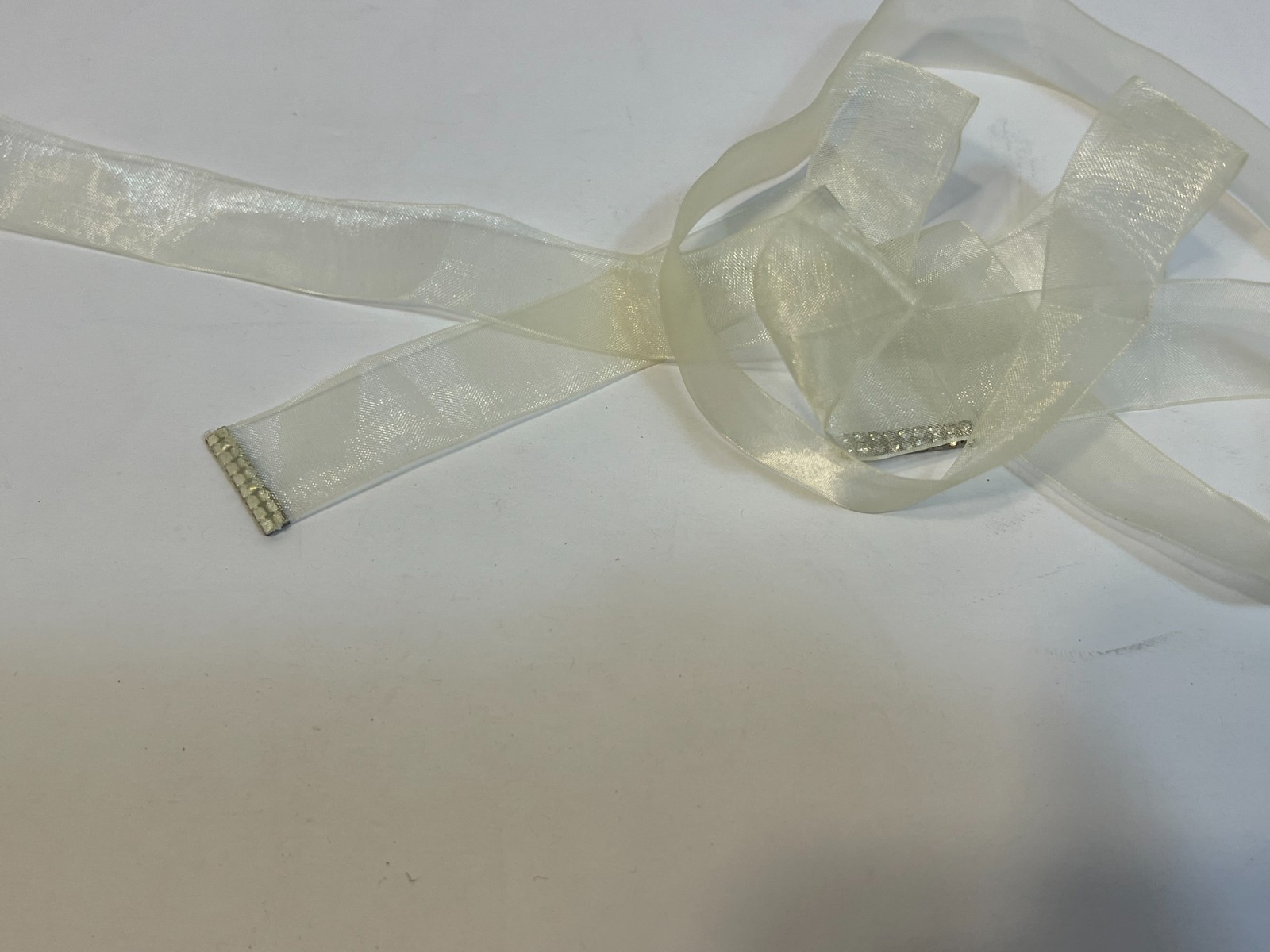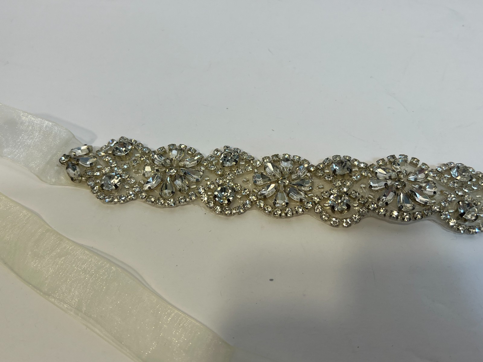 как выглядит New Rhinestone Belt Formal Wedding Ribbon Tie 86" Length Adjustable Silver Pearl фото