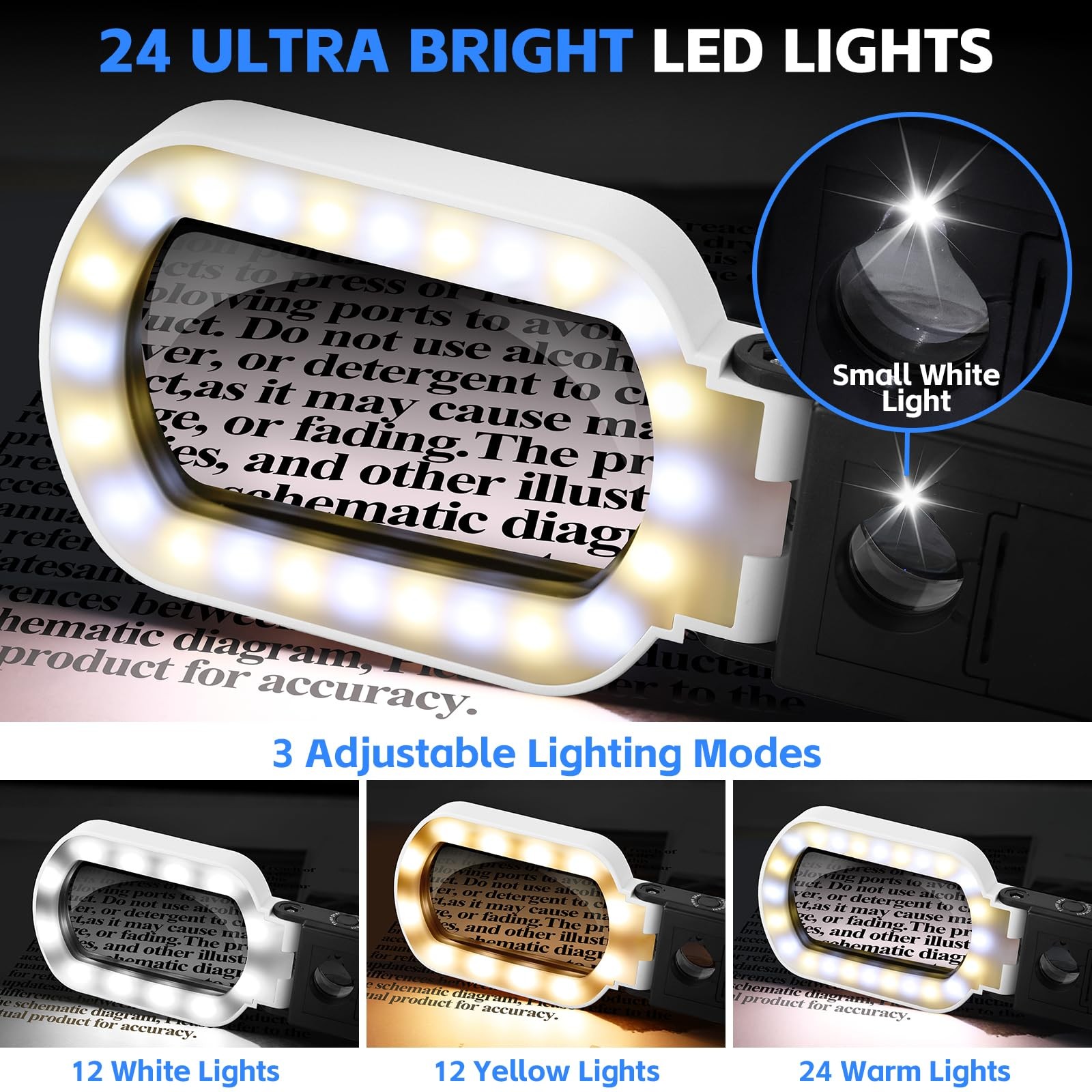 • 10X 45X Magnifying Glass with Light and Stand, Folding Handheld Reading Black