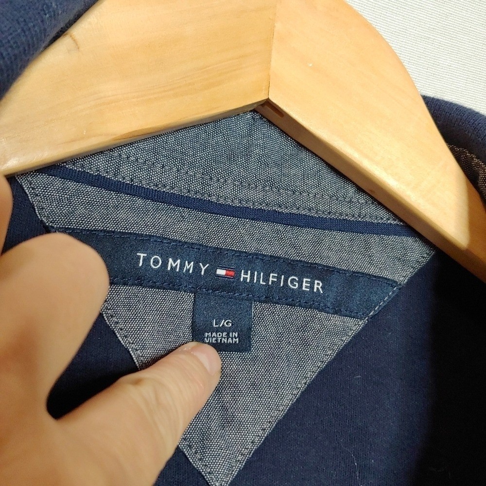Tommy Hilfiger Pique Cotton Polo Shirt Short Sleeve Navy Blue Large L