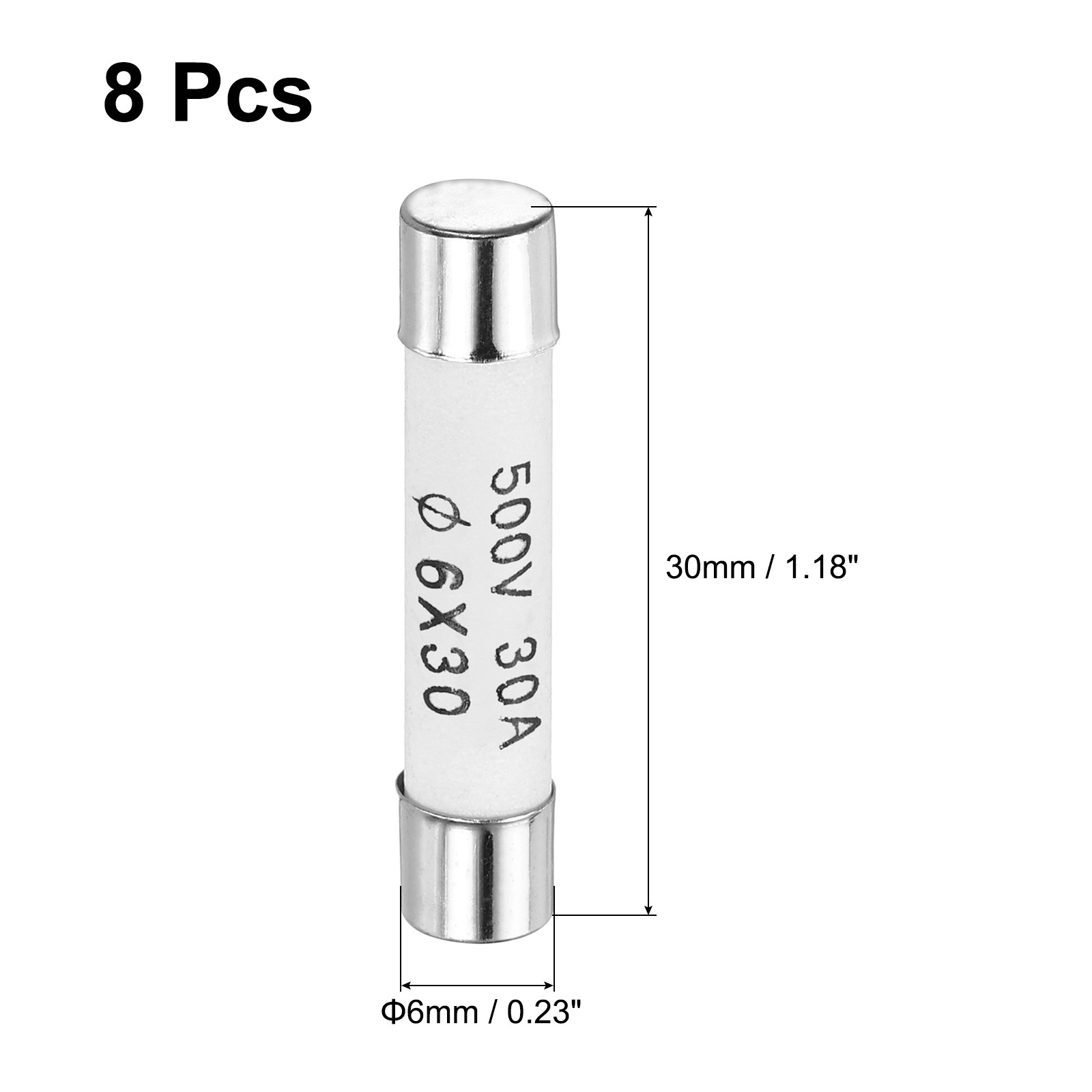 Ceramic Cartridge Fuses 30A 500V 6x30mm Fast Blow for Energy Saving Lamp 8pcs