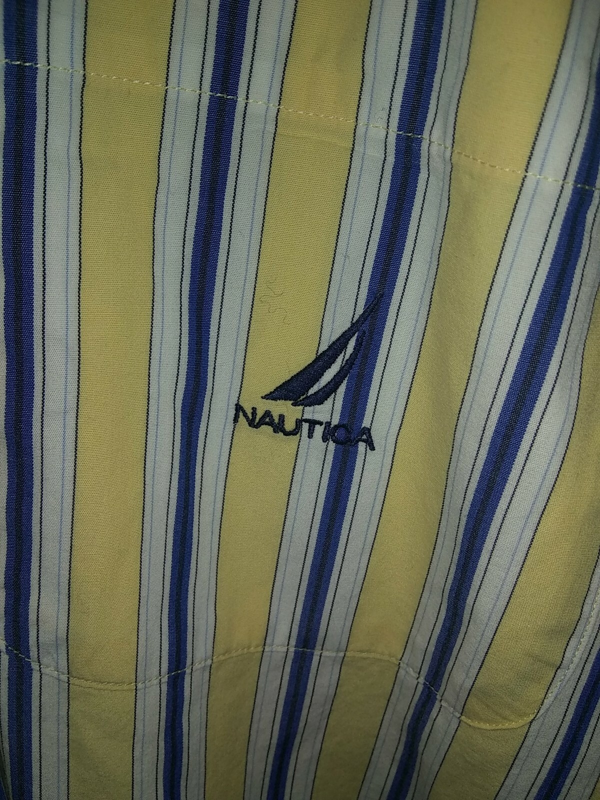 как выглядит Nautica Stretch Classic Striped Mens 2XL XXL Short Sleeve Button up фото