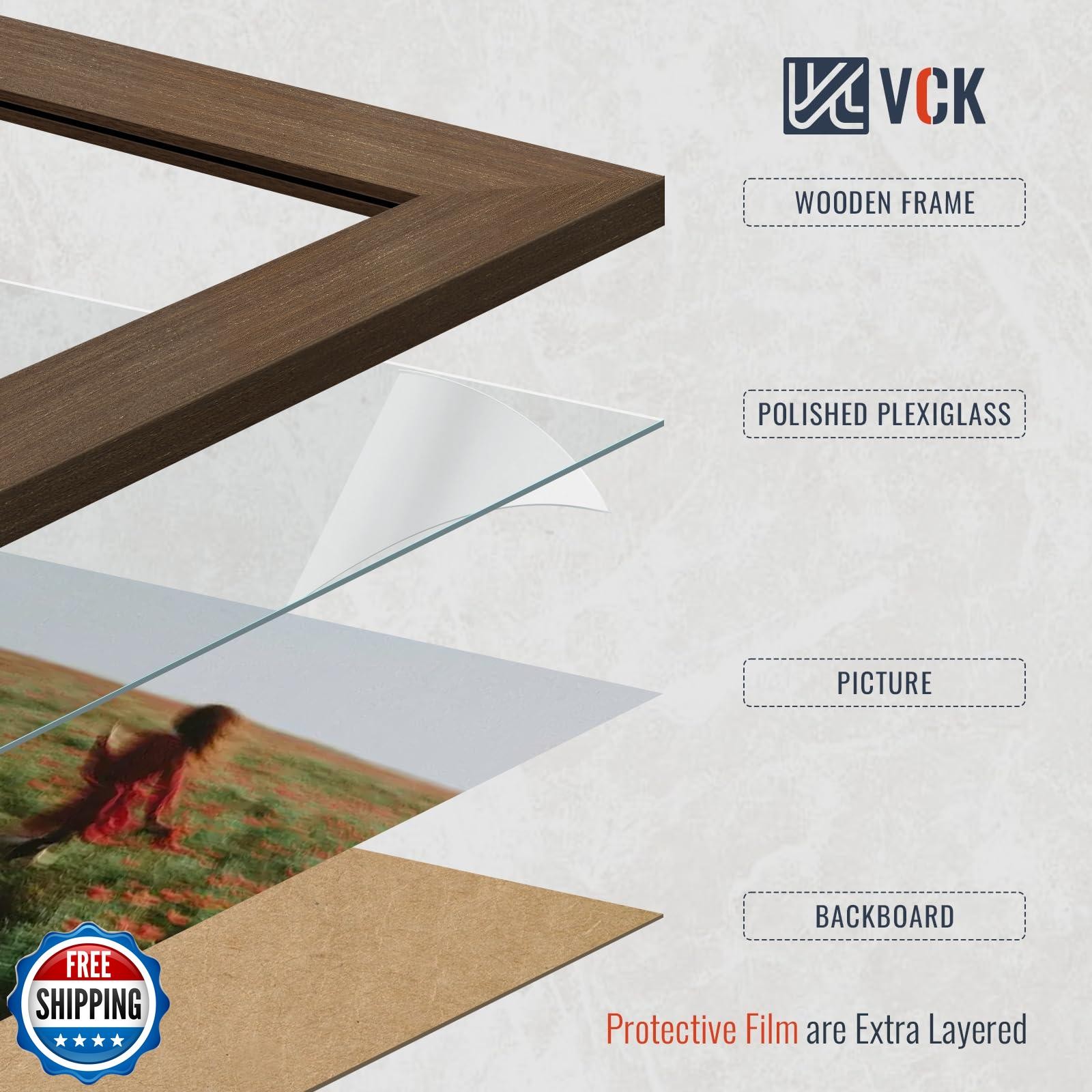 VCK 16x20 Brown Poster Frames 3 Pack, High-End Wood Wide Border P
