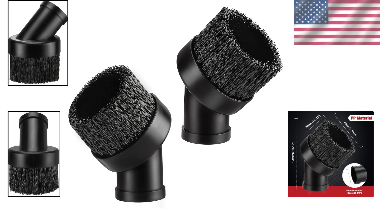 Professional Quality 1-1/4 Round Brushes 2 Pack - Durable Effective Cleaning