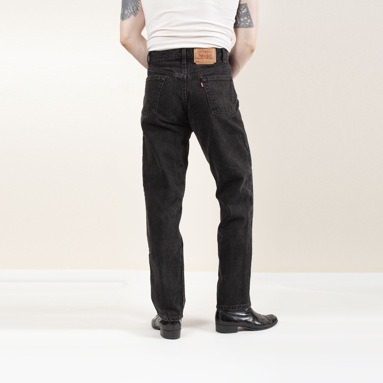 как выглядит Vintage 90s Levis 550 Jeans Black Relax Tapered Fit 31x32 30x31 фото