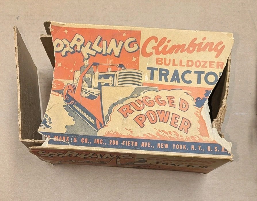 VINTAGE MARX TIN LITHO CATERPILLAR DIESEL WIND UP TOY HD BULLDOZER TRACTOR BOX