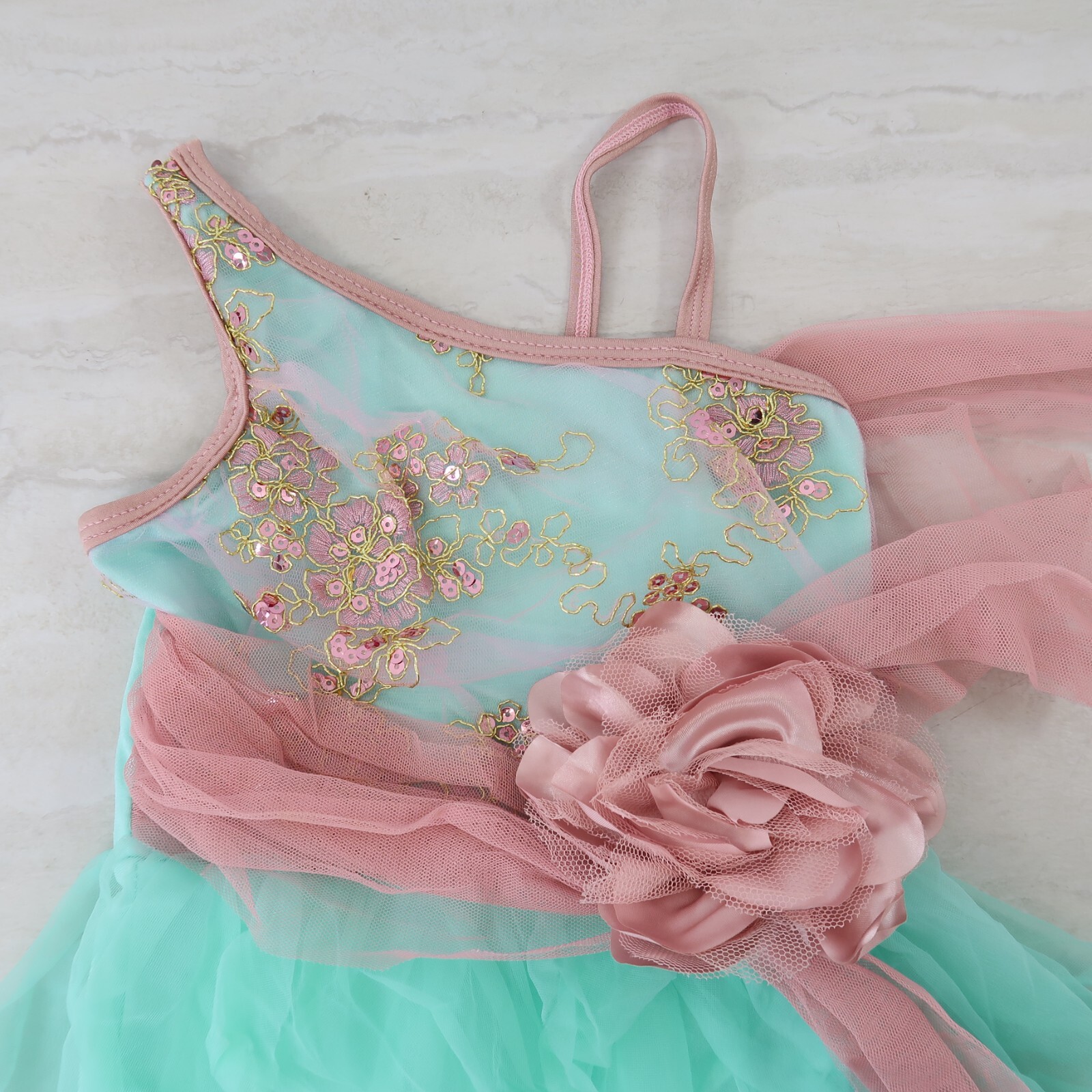 Curtain Call Dance Costume Girls Size CSM Teal Blue Pink Nylon suit