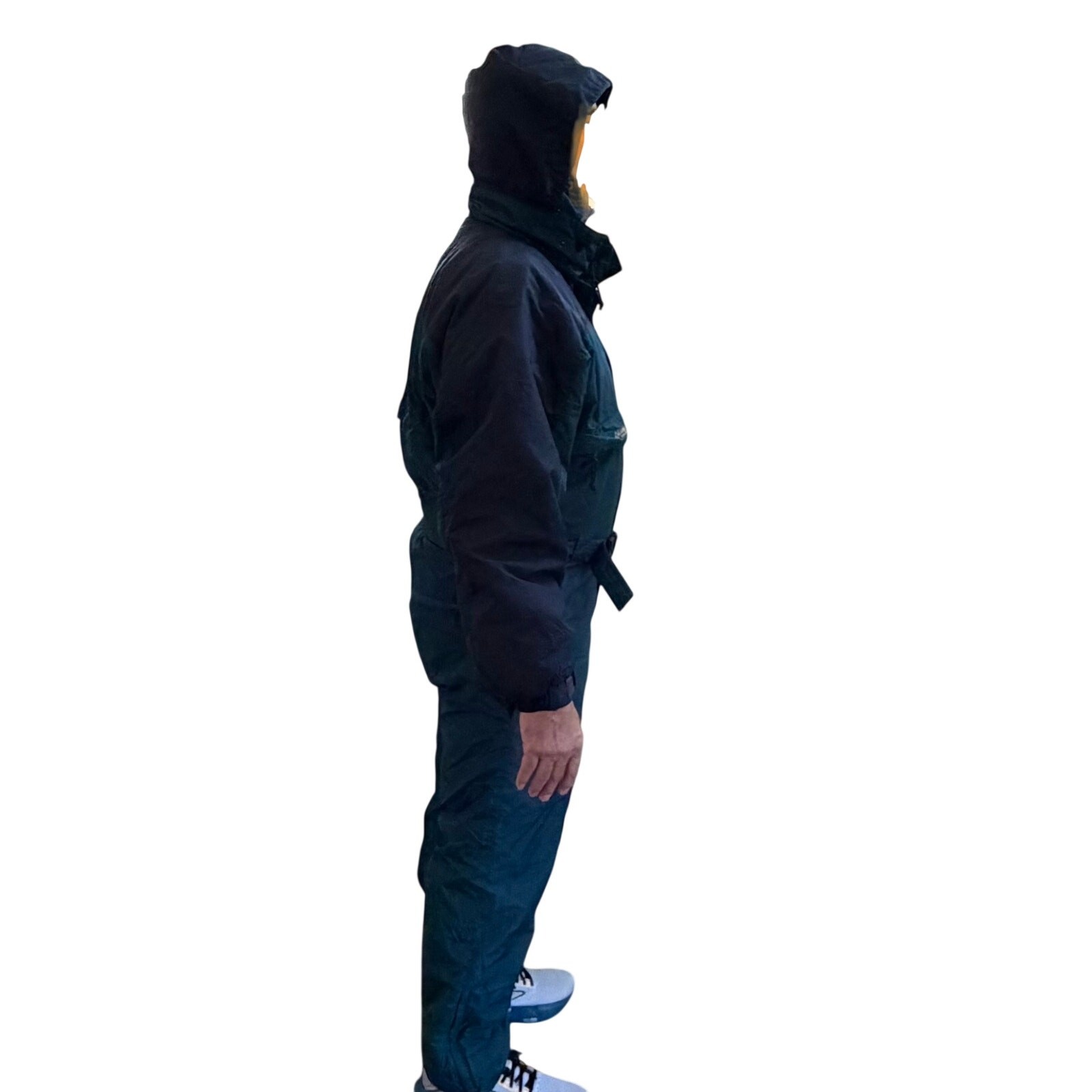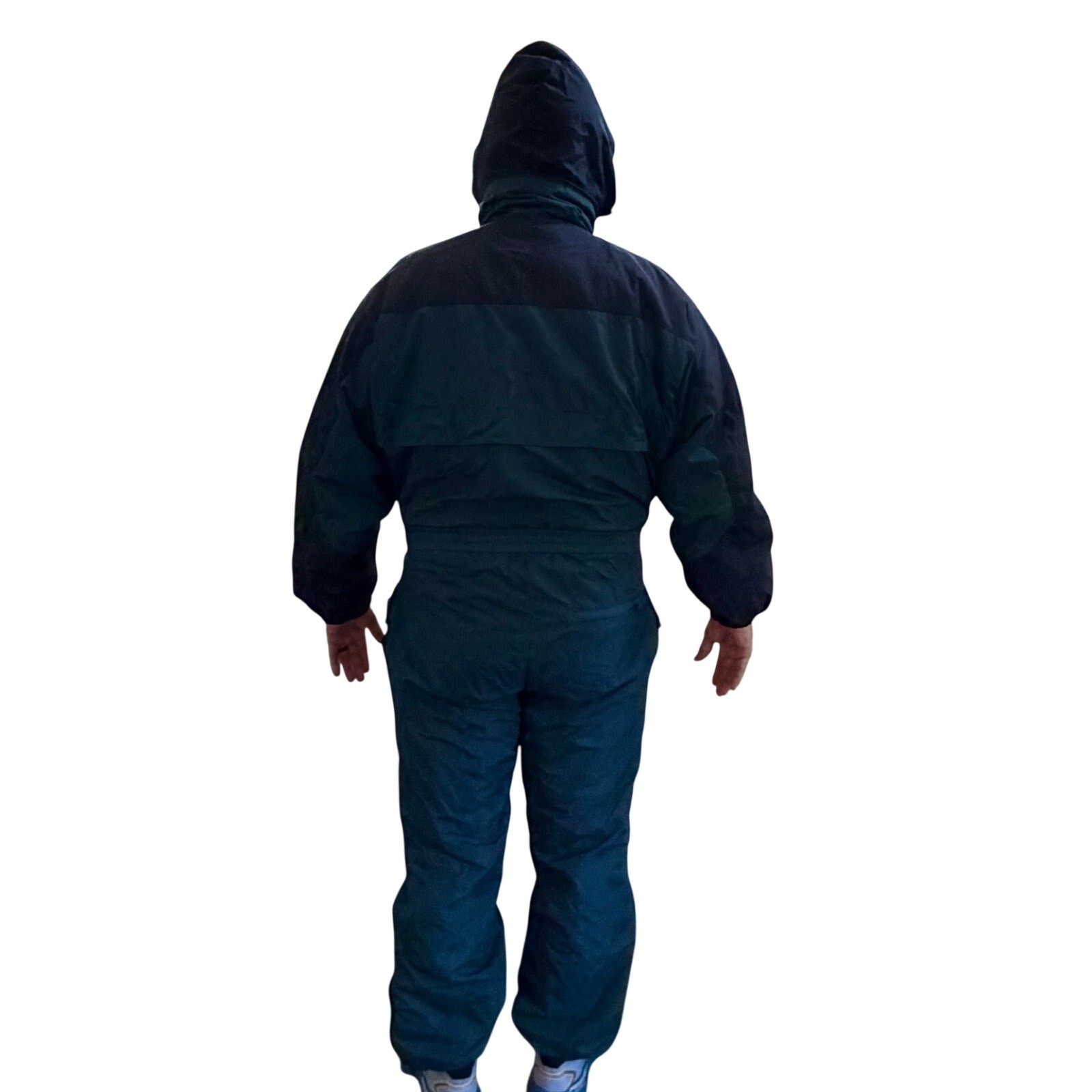 VTG Columbia One-piece Hooded Zip Snow Ski Suit Navy Blue Teal Men s Sz Lg