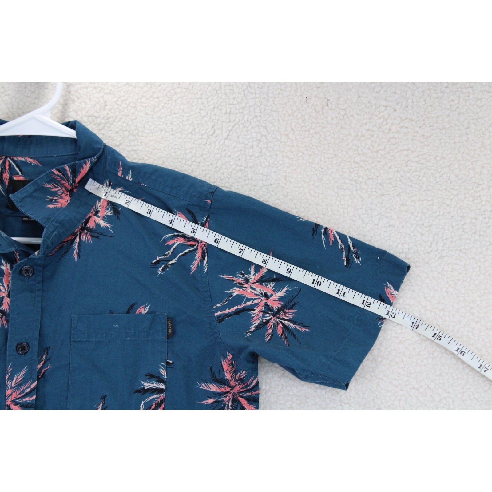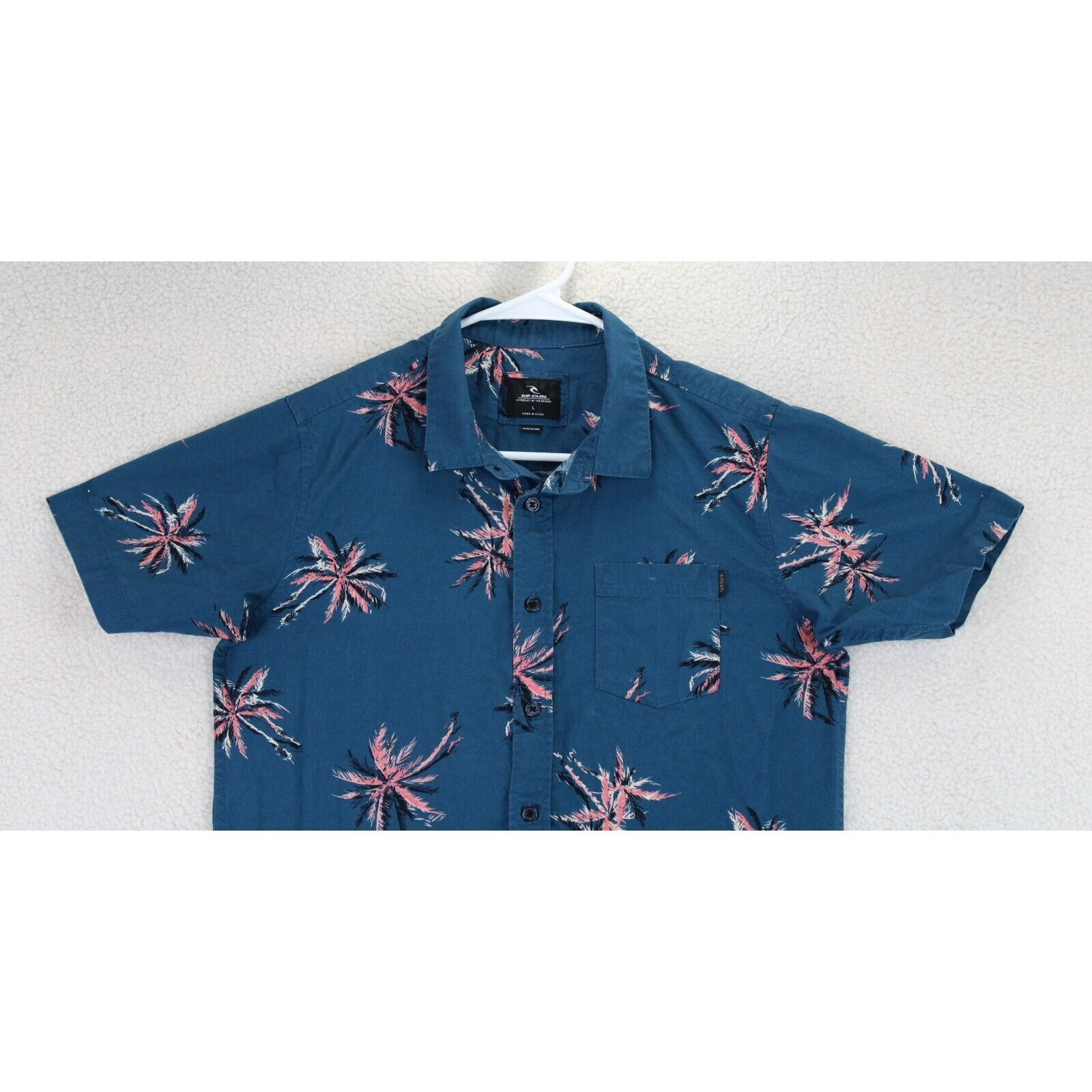 Rip Curl Men's Blue Palm Tree Print Short Sleeve Button Up Shirt Size L
