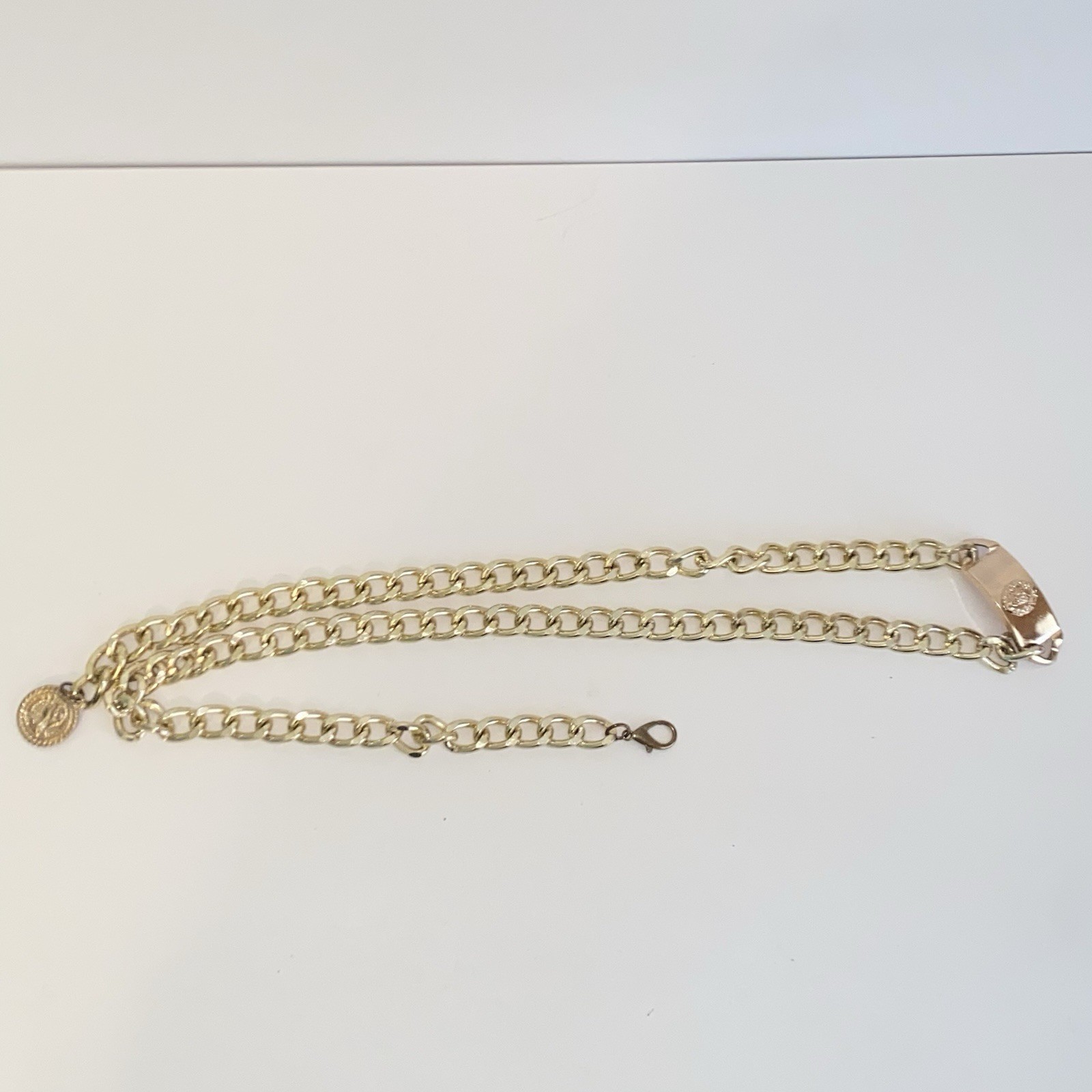 Vintage Lions Head Coin Medallion Gold Chain Adjustable Belt Womens Size L
