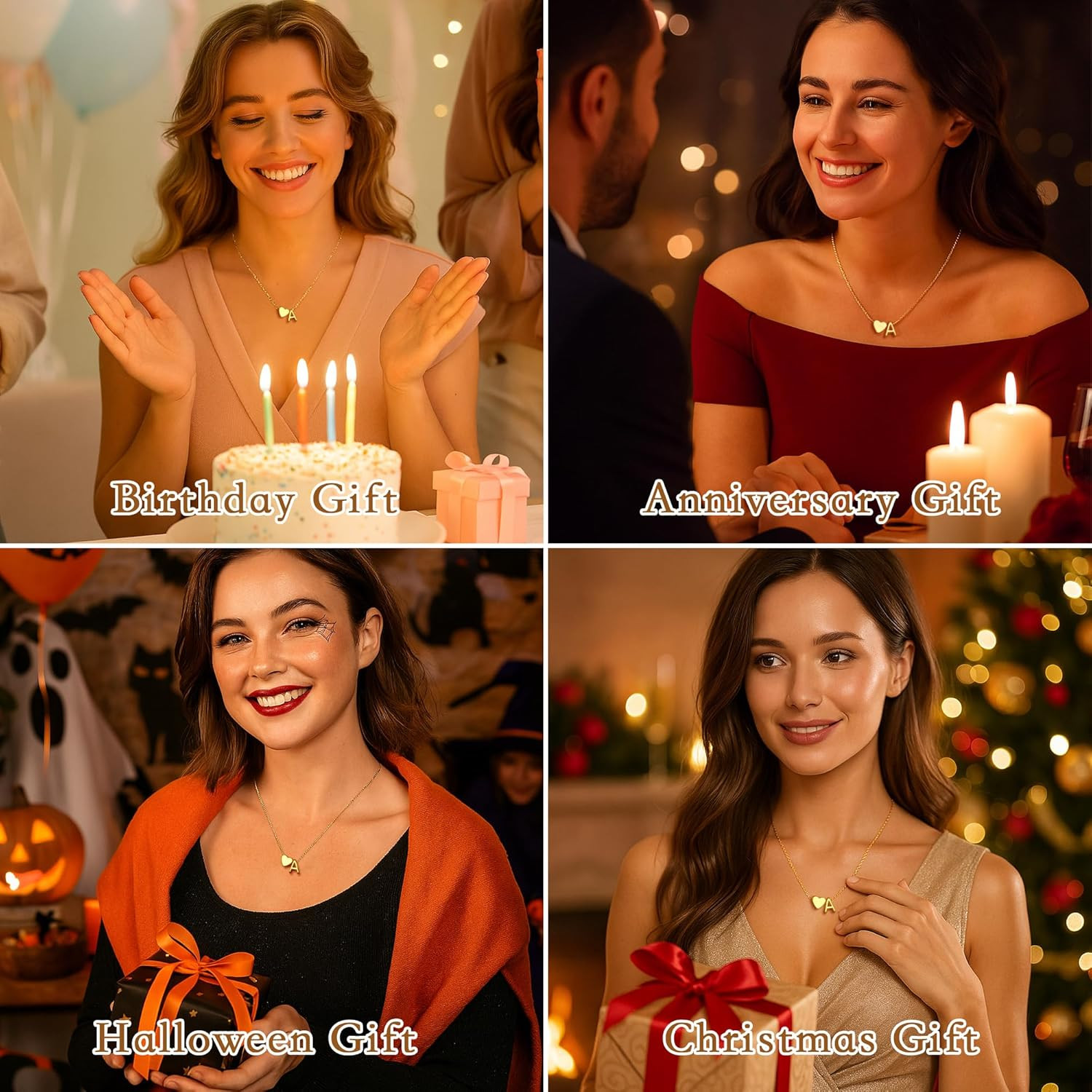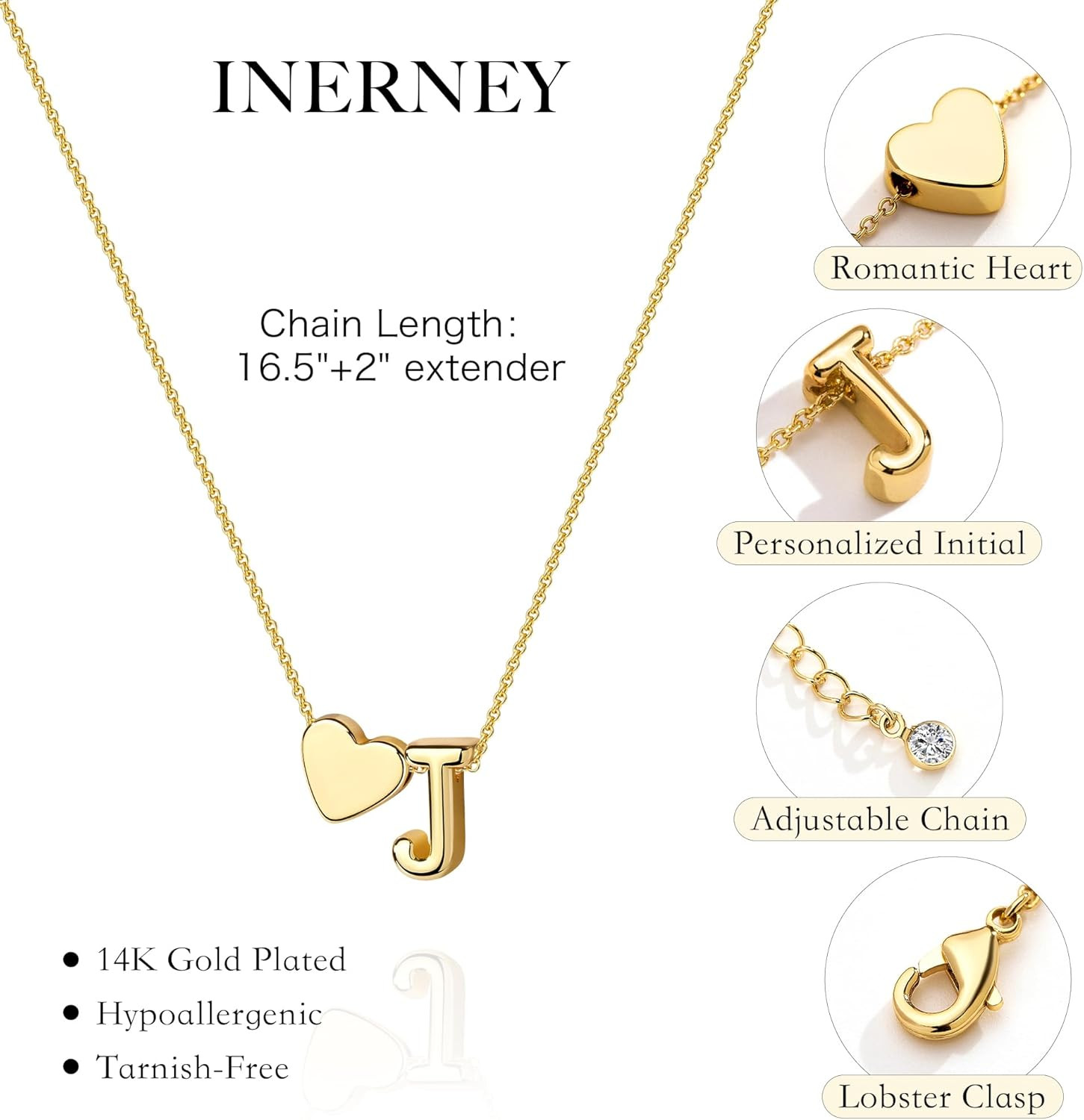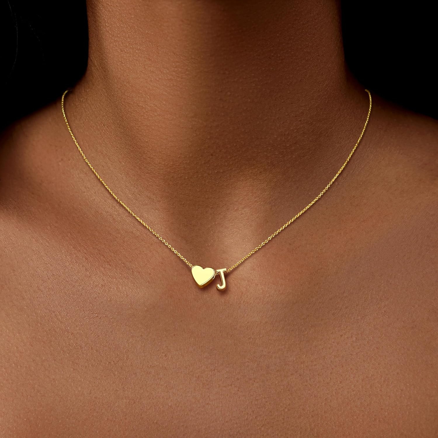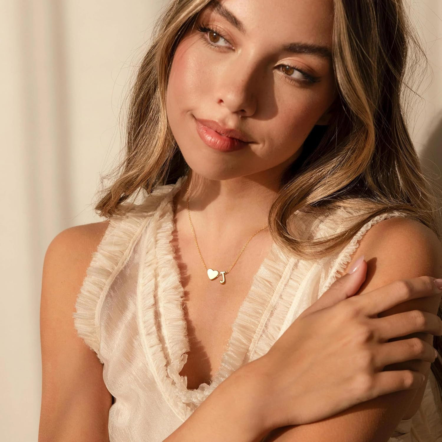 Gold Heart Initial Necklace for Women 14K Gold Plated A-Z Letter Pendant Necklac