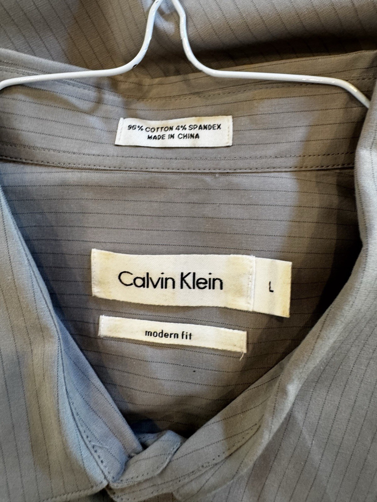 Calvin Klein Men's Modern Fit Stretch Light Gray Dress Shirt Size Large
