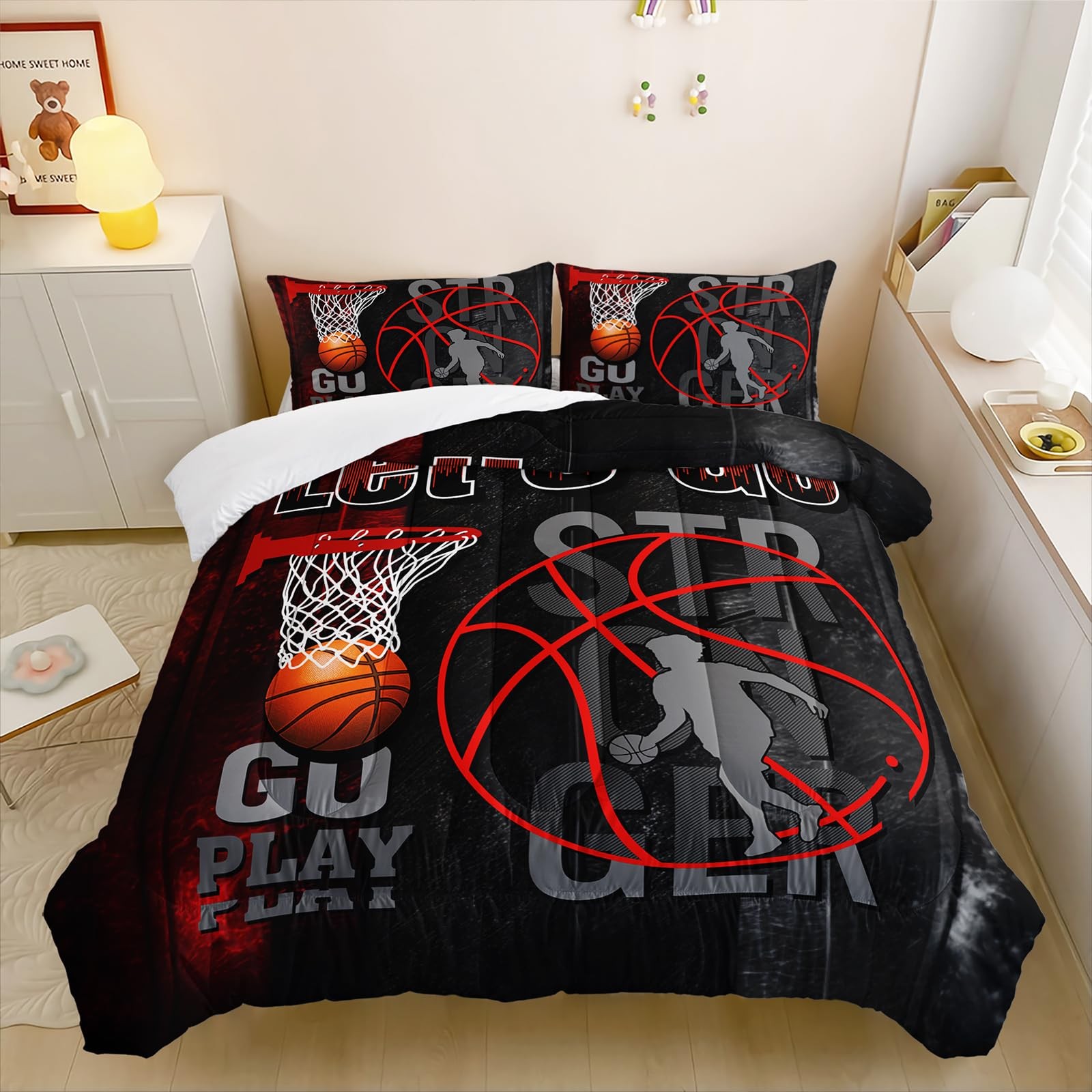 Basketball Comforter Set Queen Size, Sport Basketball Bedding Set for Boys Te...
