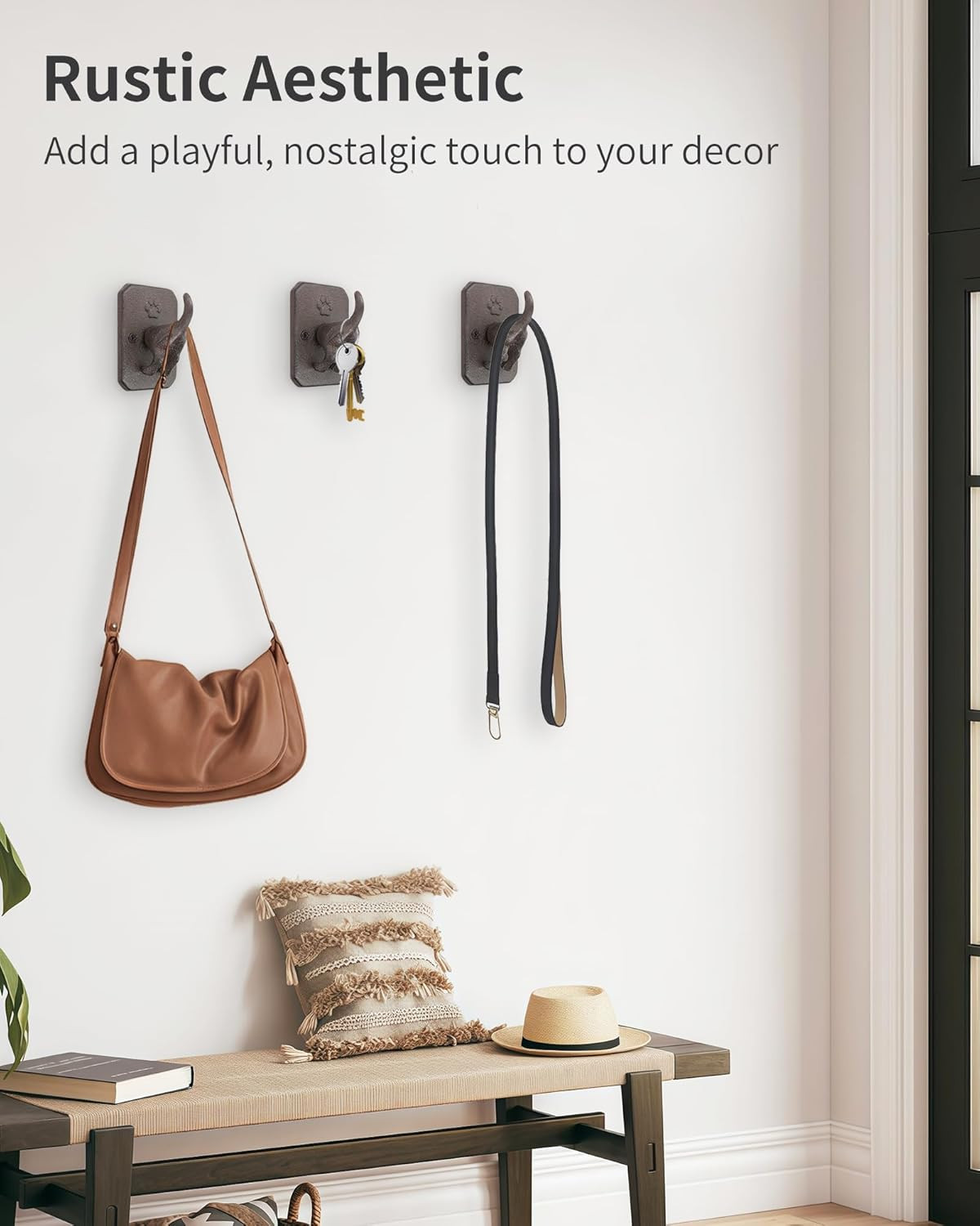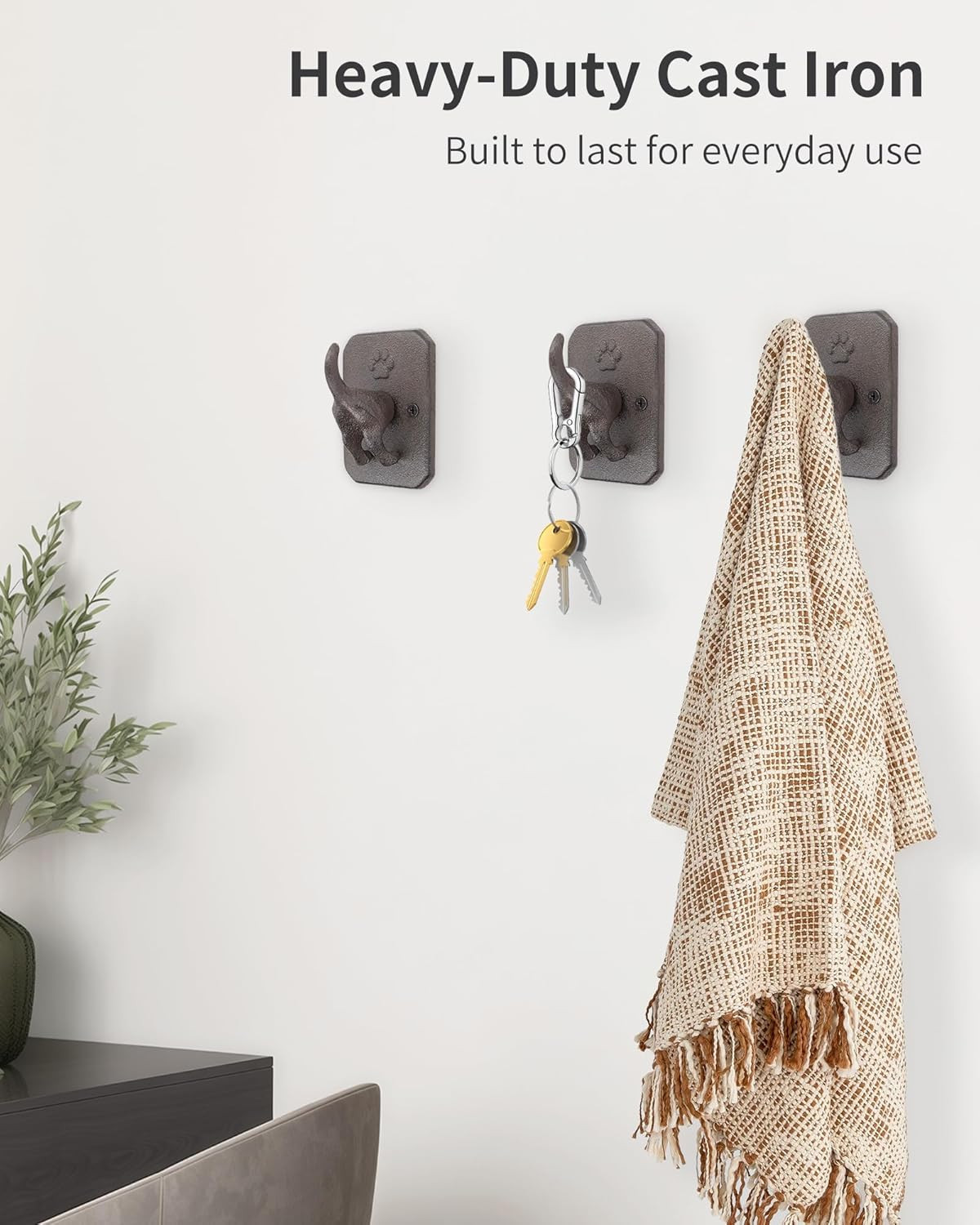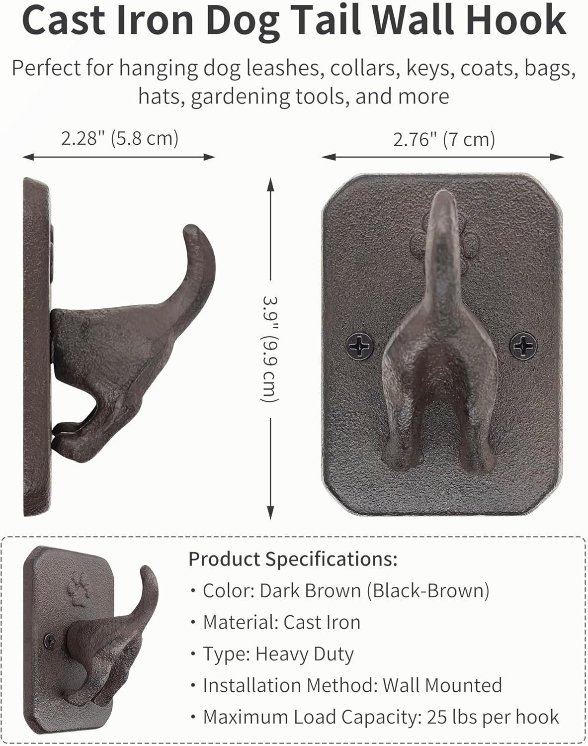 Cast Iron Dog Tail Wall Hooks - Heavy Duty Rustic Dog Leash Holder, Wall Mount C