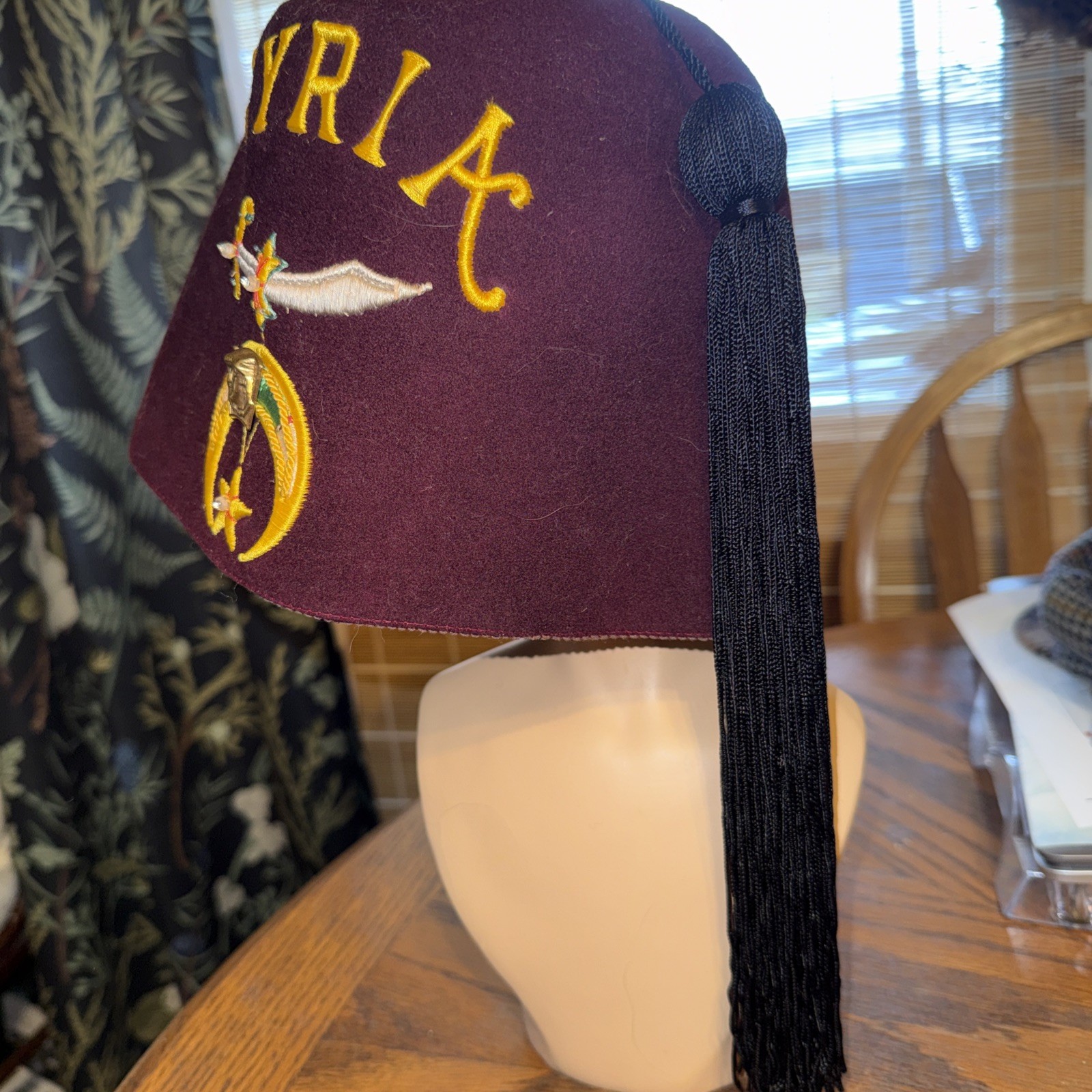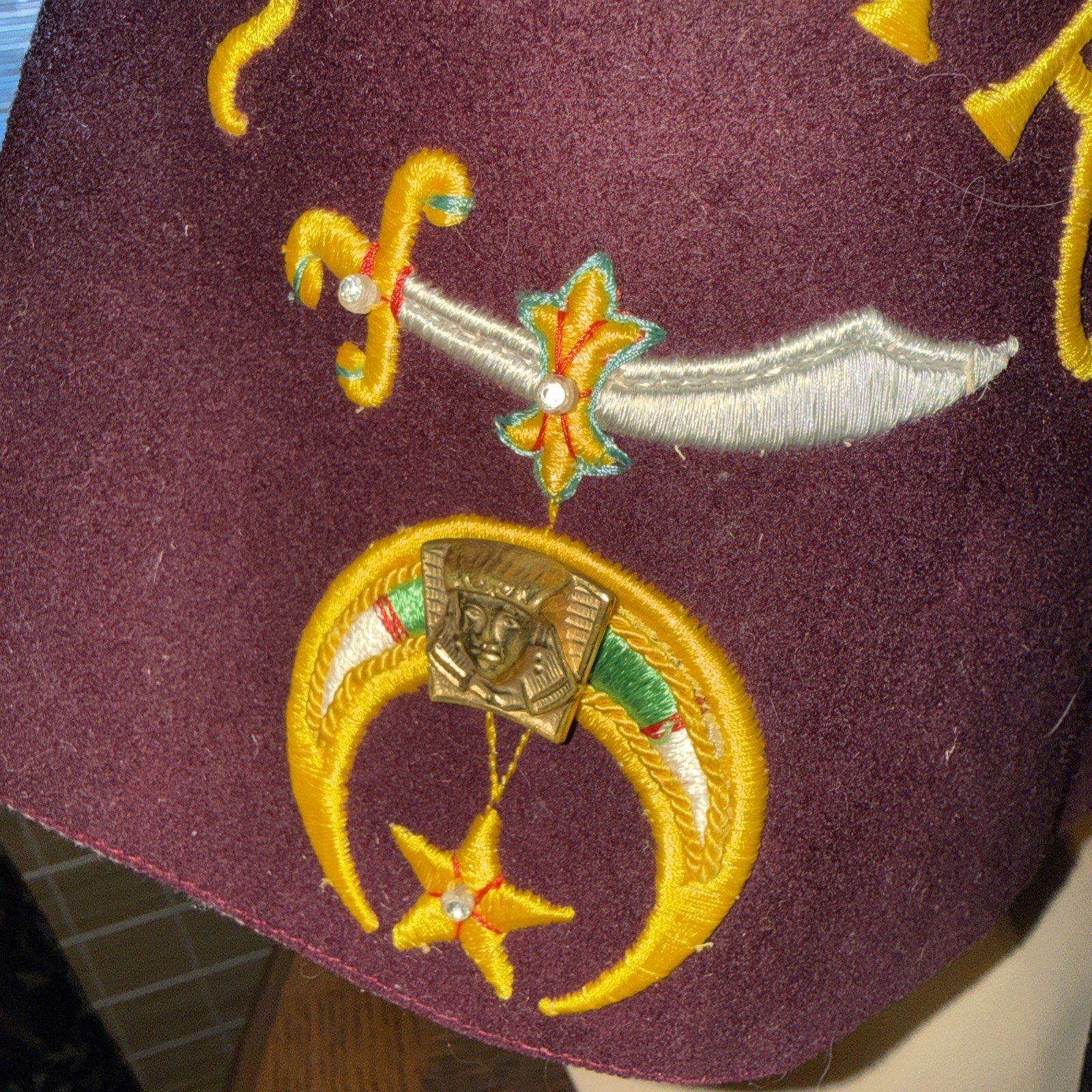 как выглядит Vintage Masons Shriners Syria Fez Ceremonial Jeweled Hat With Tassel фото