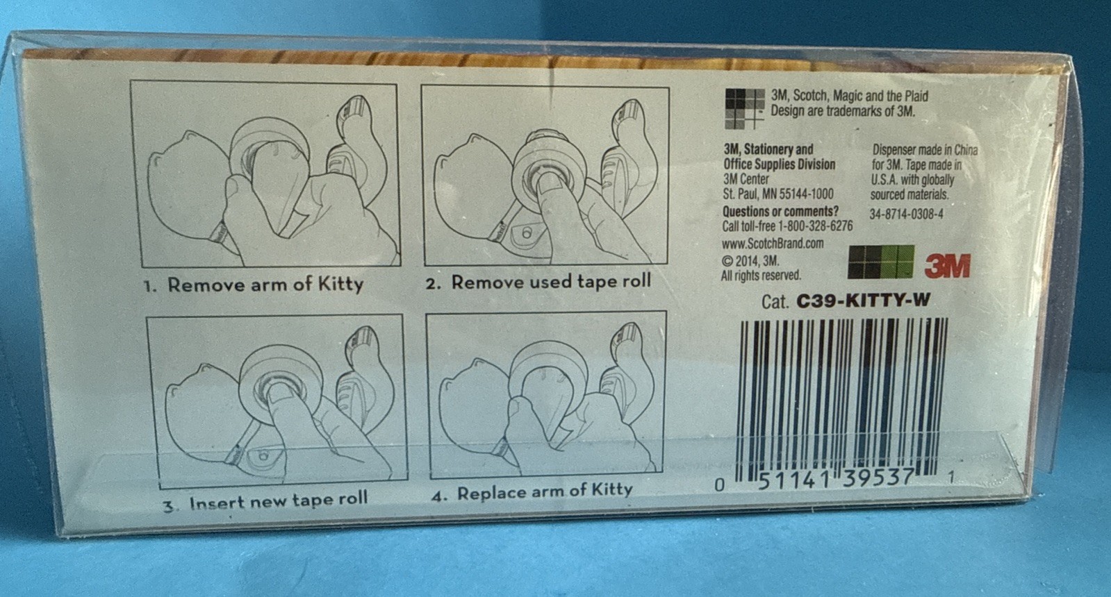 Scotch Magic Tape 3M White Kitty Cat Tape Dispenser New