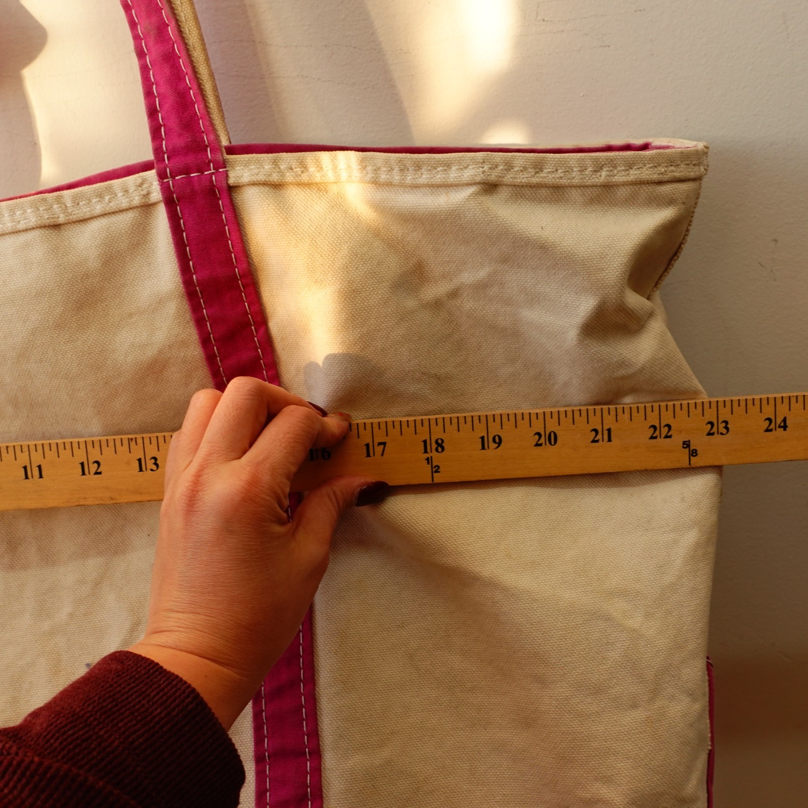 как выглядит Vintage LL Bean Boat and Tote Bag XL Pink Cream Canvas Zip Top Weekender USA фото