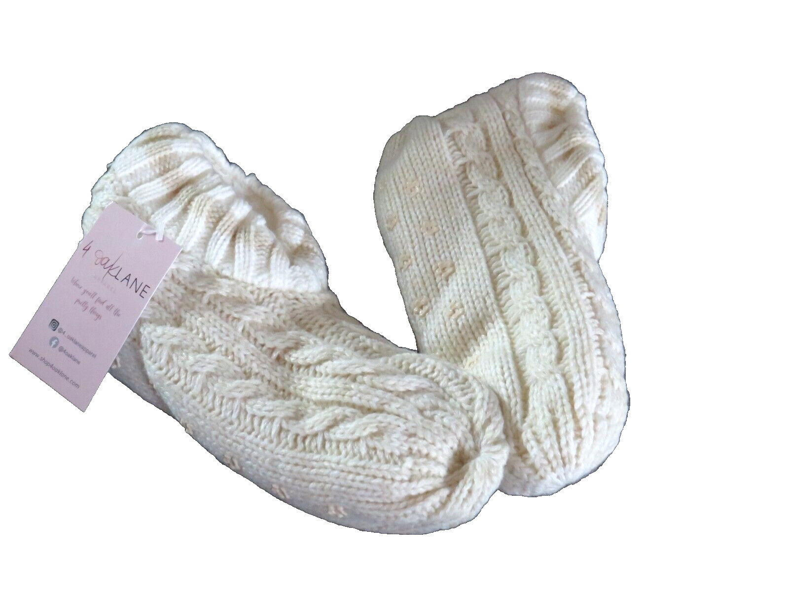 4 Oak Lane Apparel Ivory Plush Cable Knit Slipper Socks, Size Small-Medium