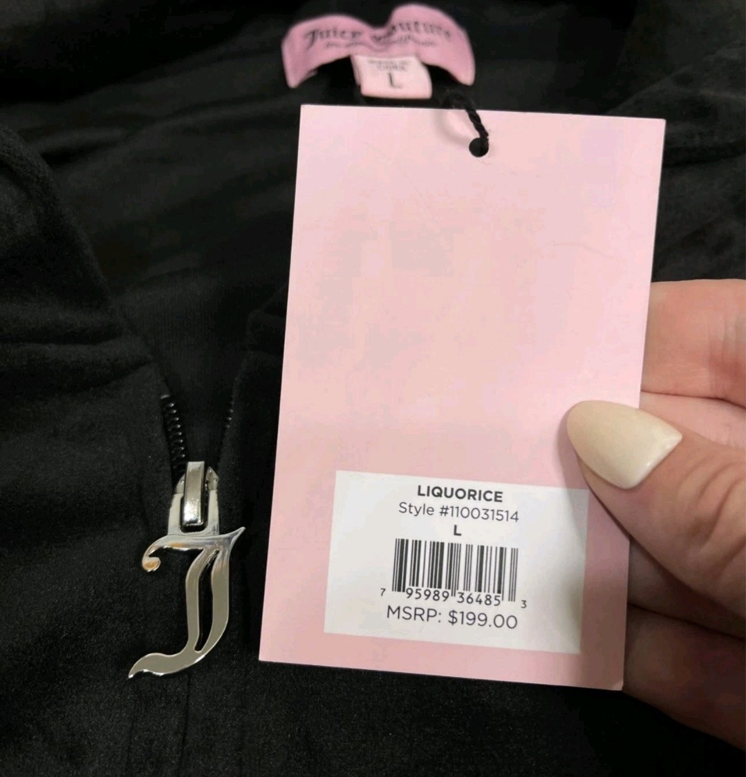 NWT JUICY COUTURE L Velour Bling Tracksuit Hoodie Pants Black Size Large GIFT