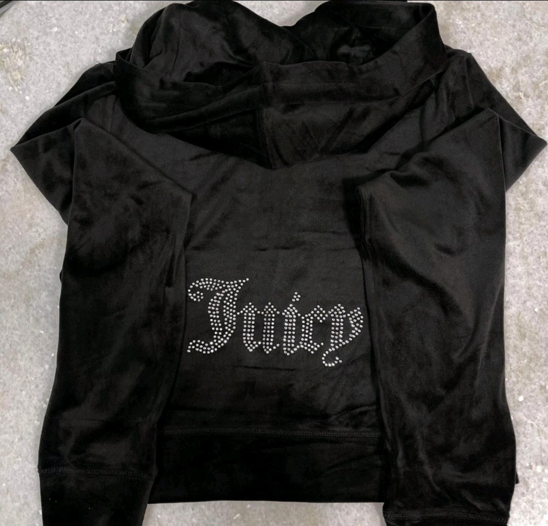 как выглядит NWT JUICY COUTURE L Velour Bling Tracksuit Hoodie Pants Black Size Large GIFT фото
