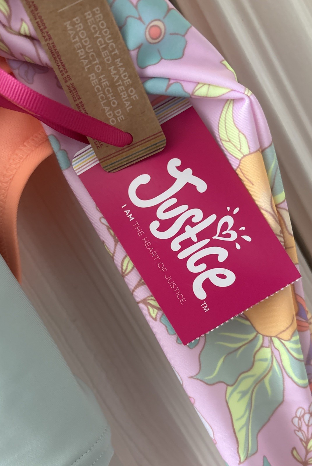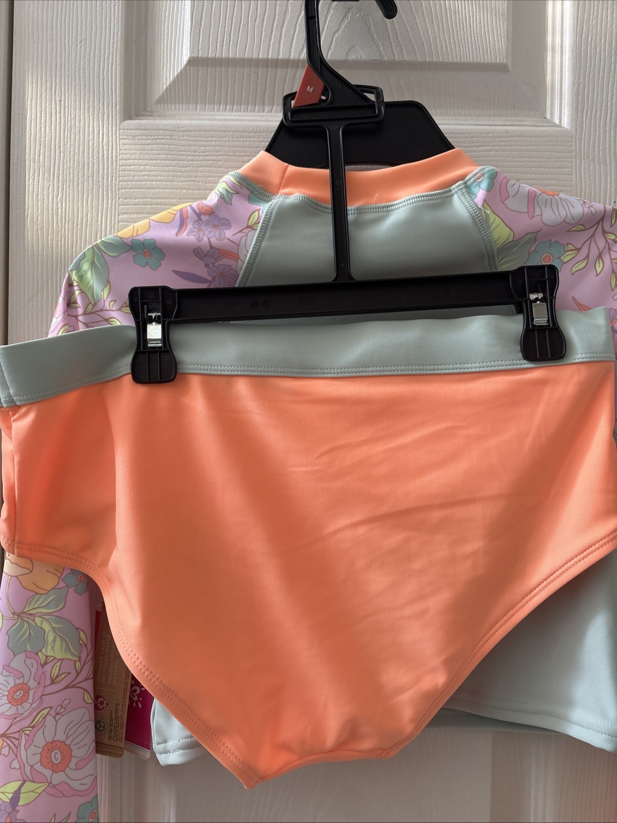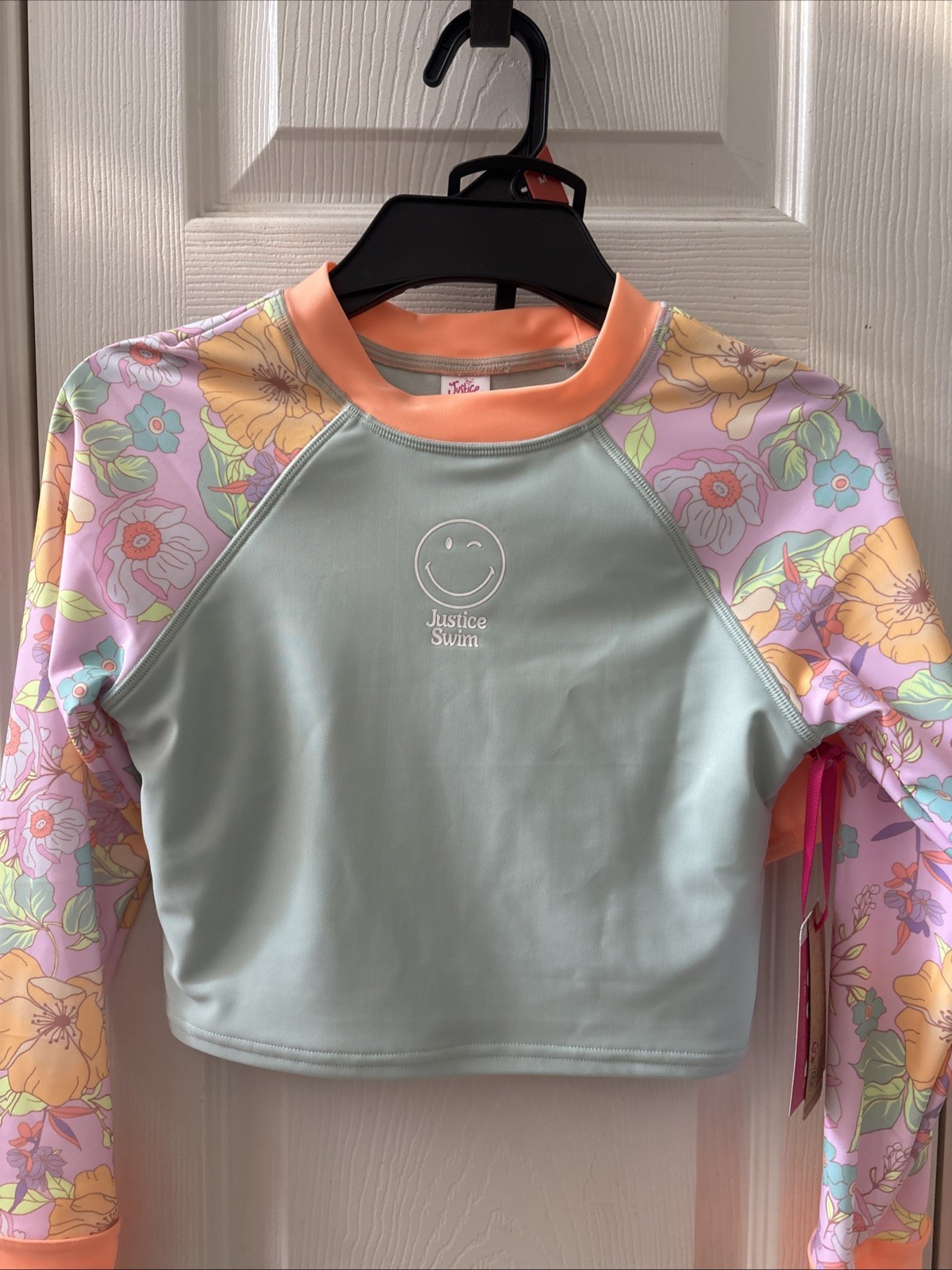 как выглядит Justice Girls 2 Pc Long Sleeve Tropical Rash Guard Swimsuit Medium Flowers фото