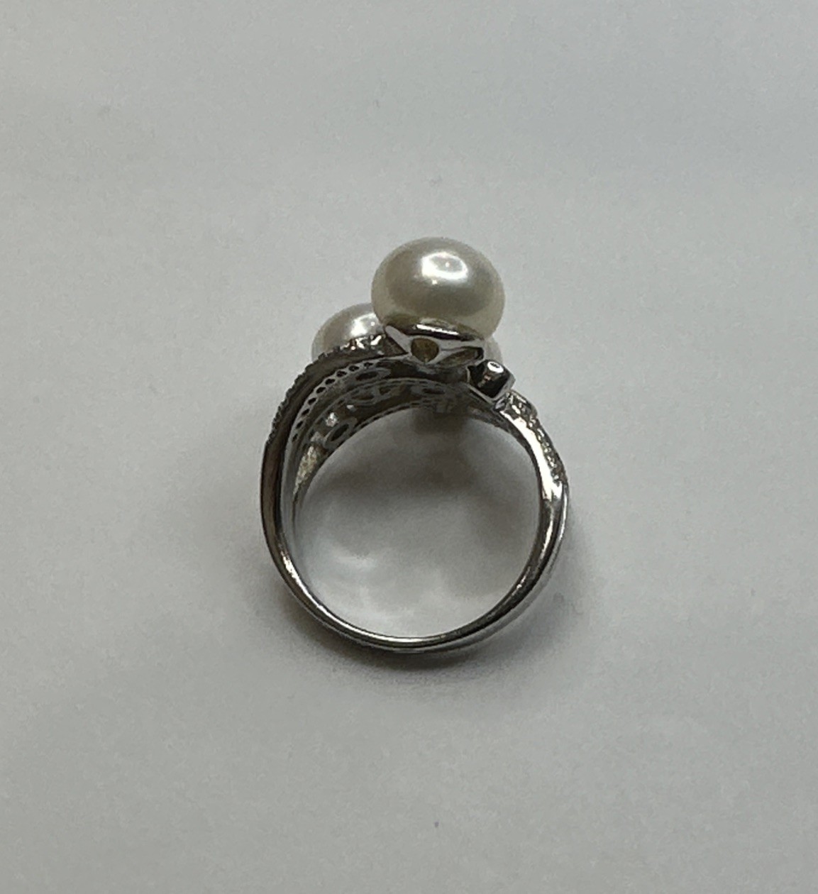 как выглядит Elegant 925 Sterling Silver Triple Pearl Designer Statement Ring / Size 7 фото