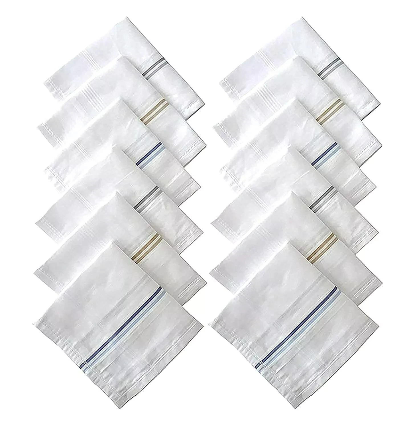 100 Cotton Premium Collection Handkerchiefs Hanky For Men Large Size Pack 12