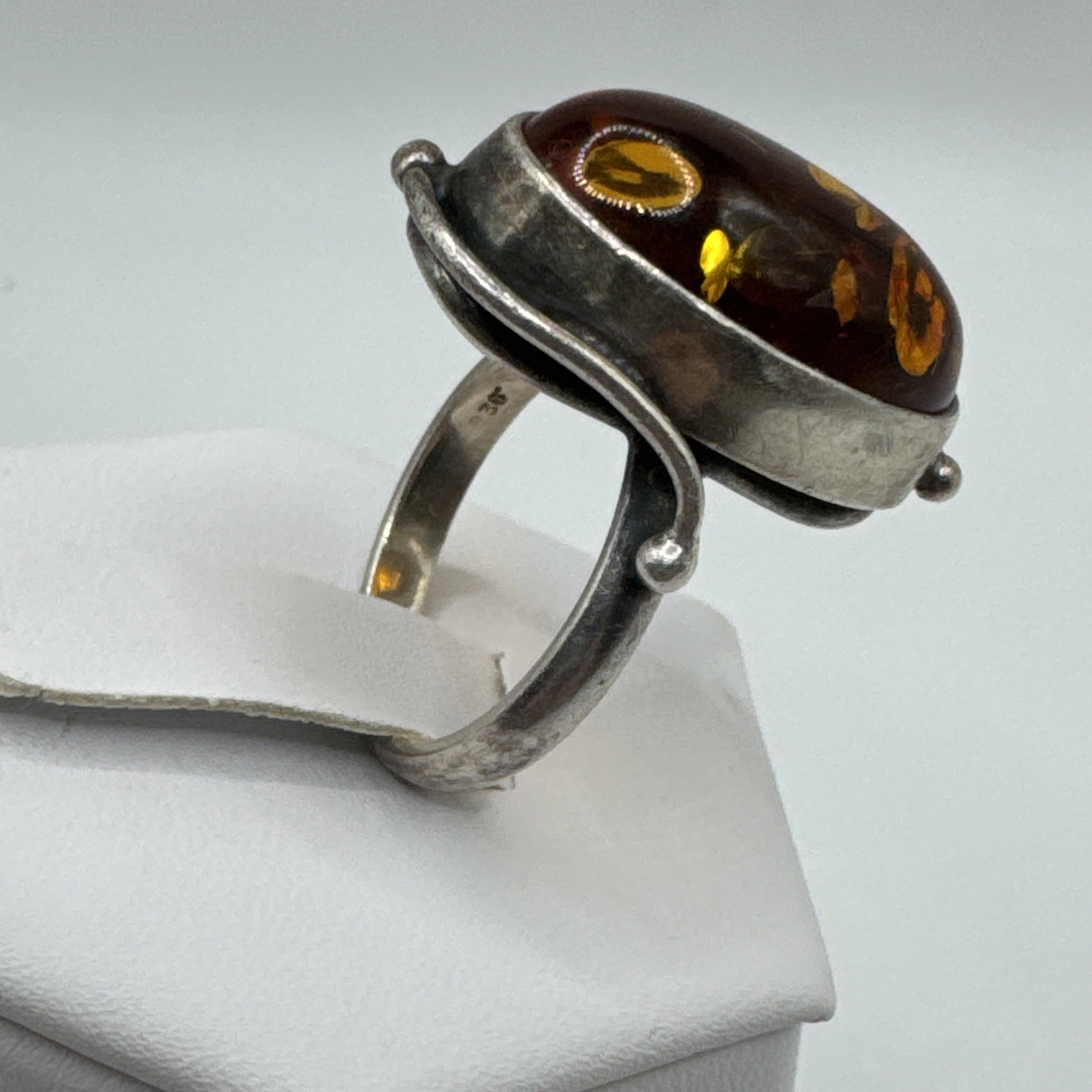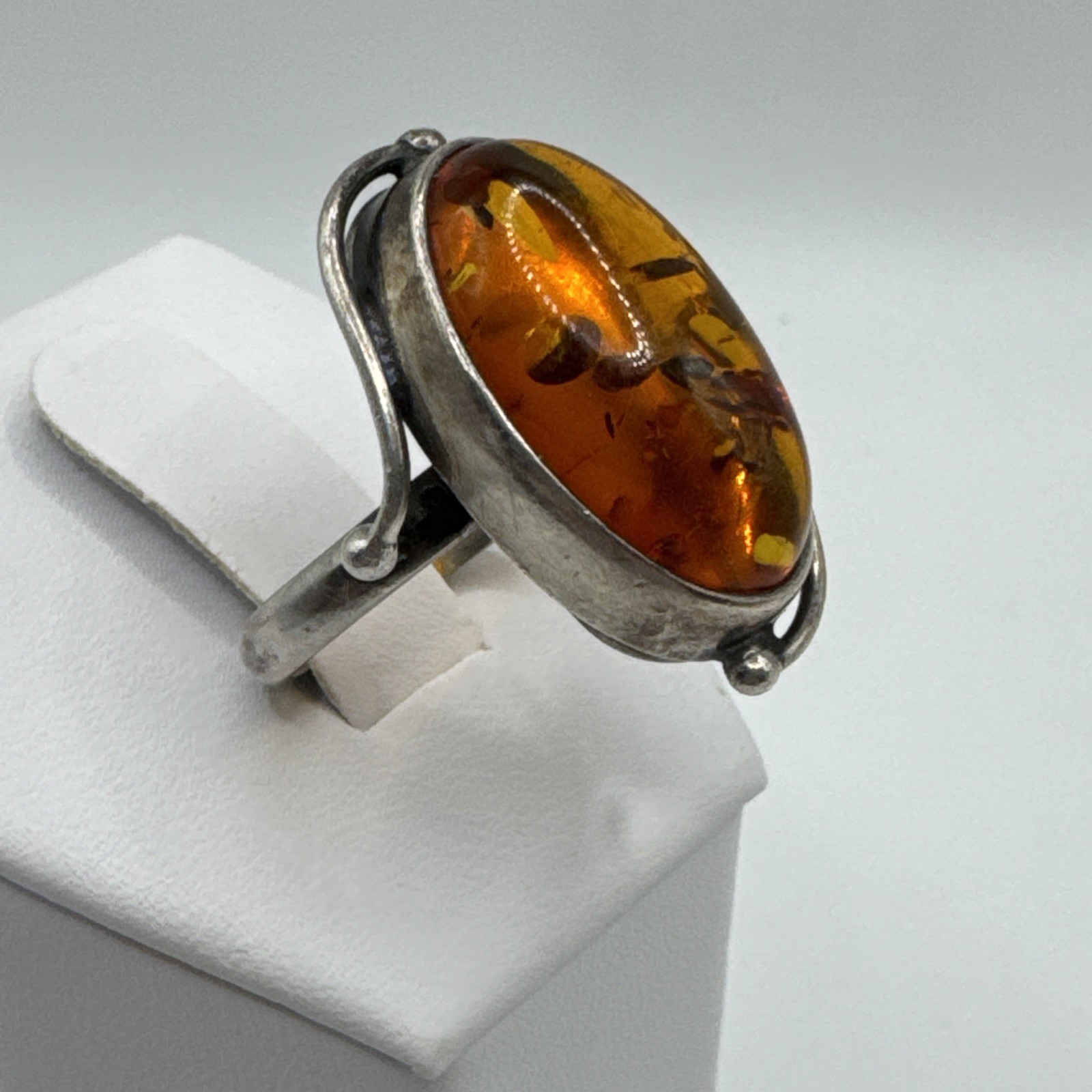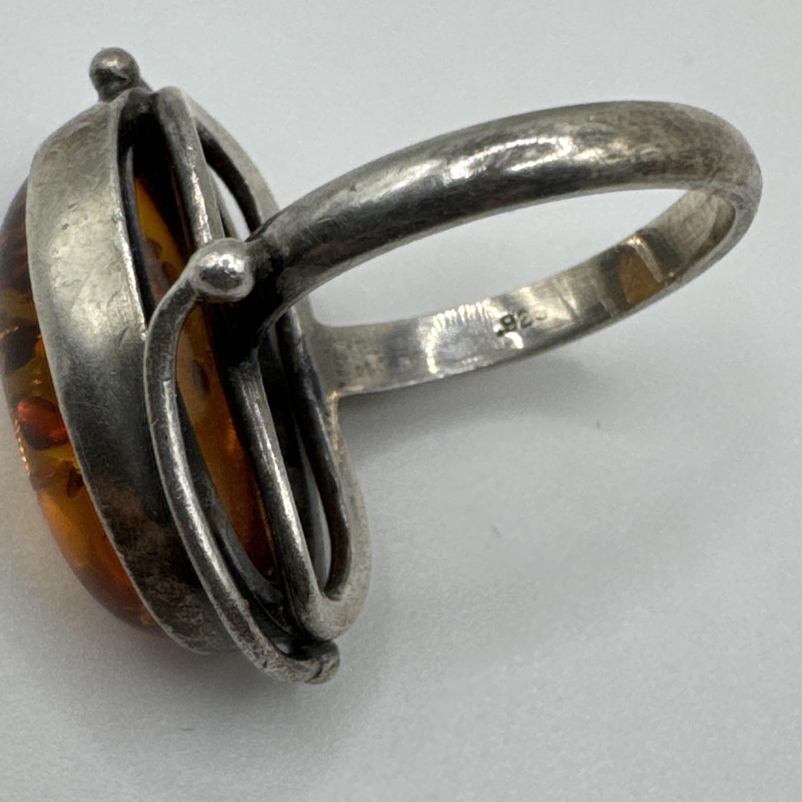 как выглядит Honey Genuine BALTIC AMBER Cabochon Sterling Silver Handmade Ring Sz 6.75 фото
