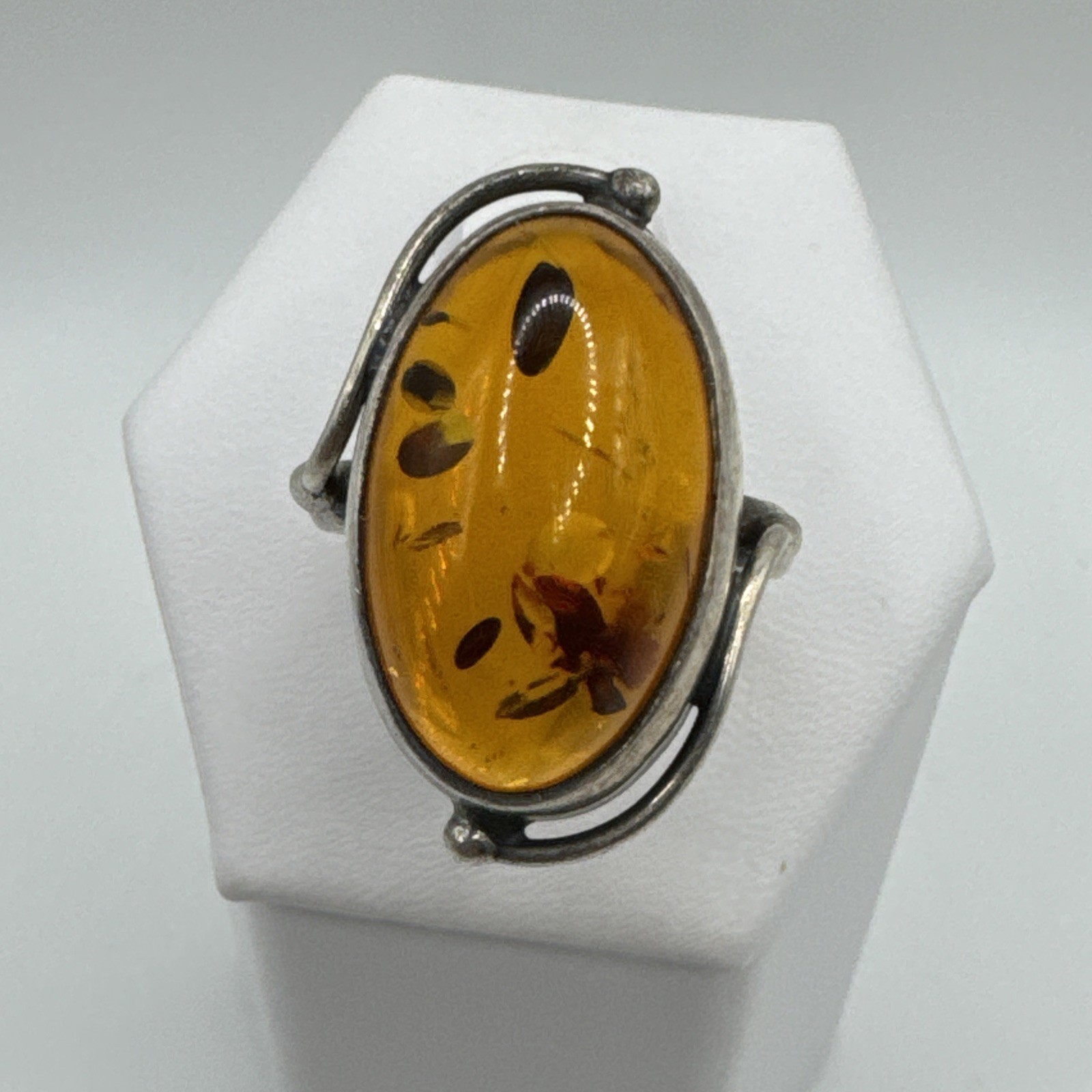 Honey Genuine BALTIC AMBER Cabochon Sterling Silver Handmade Ring Sz 6.75
