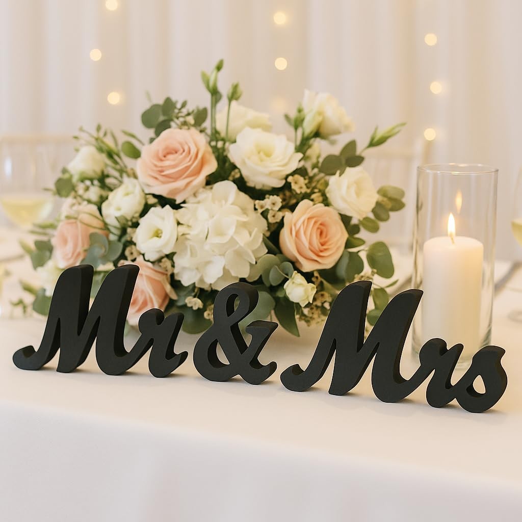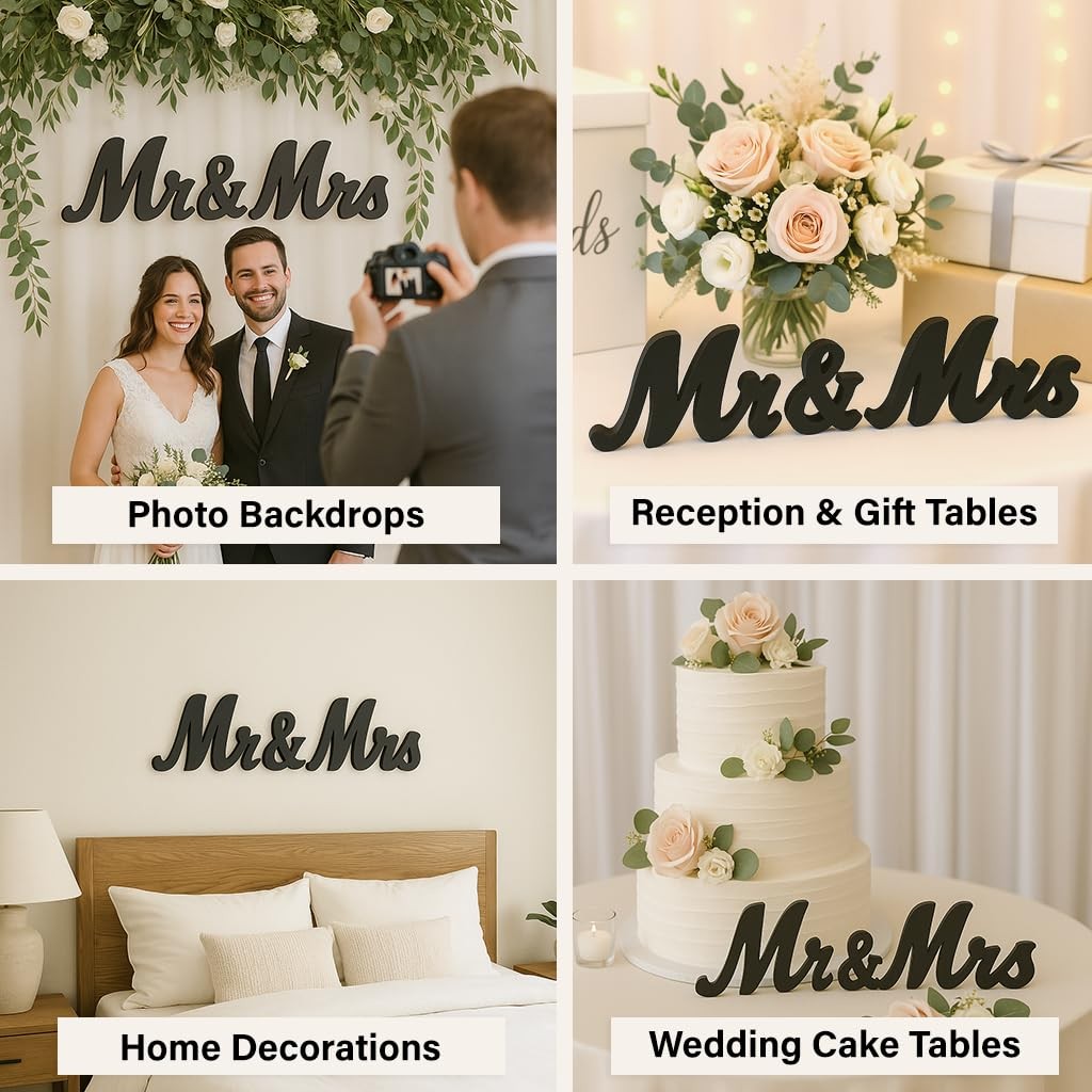 Black Wooden Mr Mrs Signs for Wedding Reception Decorations