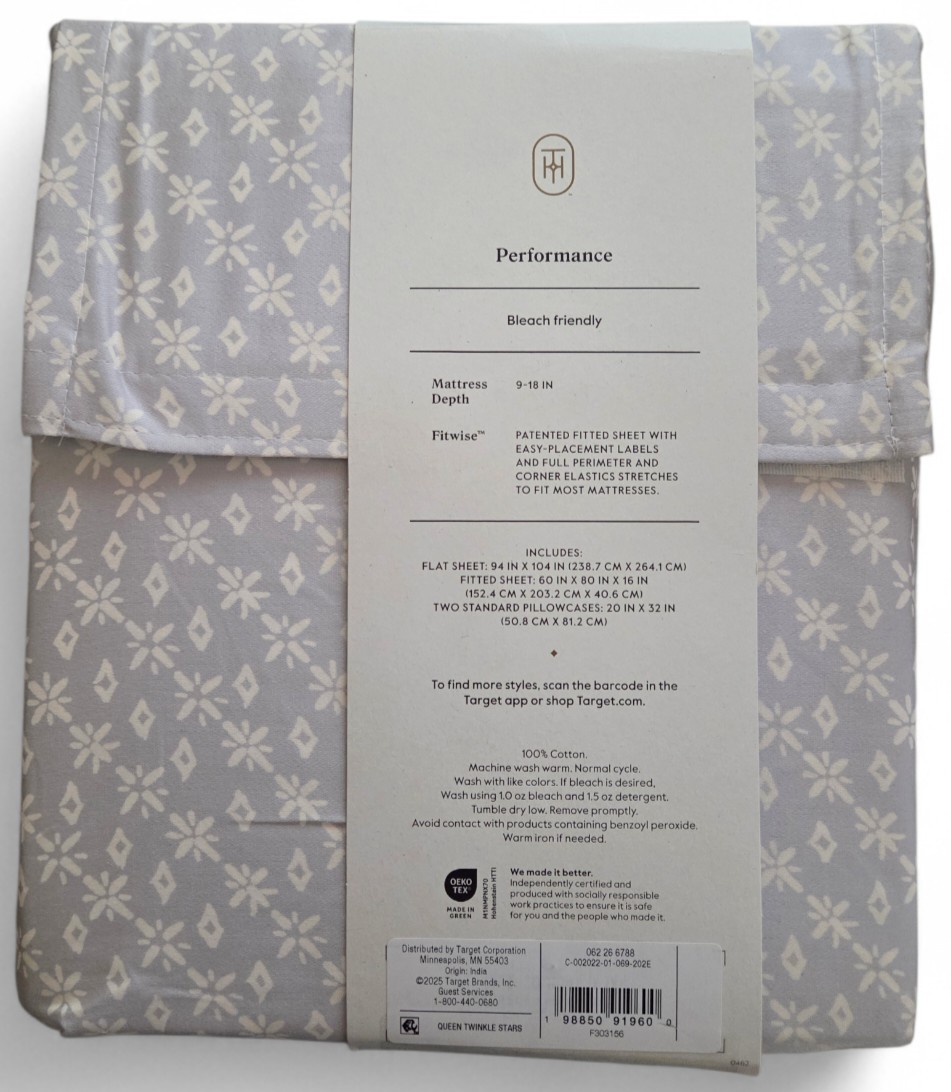 Threshold Queen 400 Thread Count Performance Sheet Set Twinkle Stars