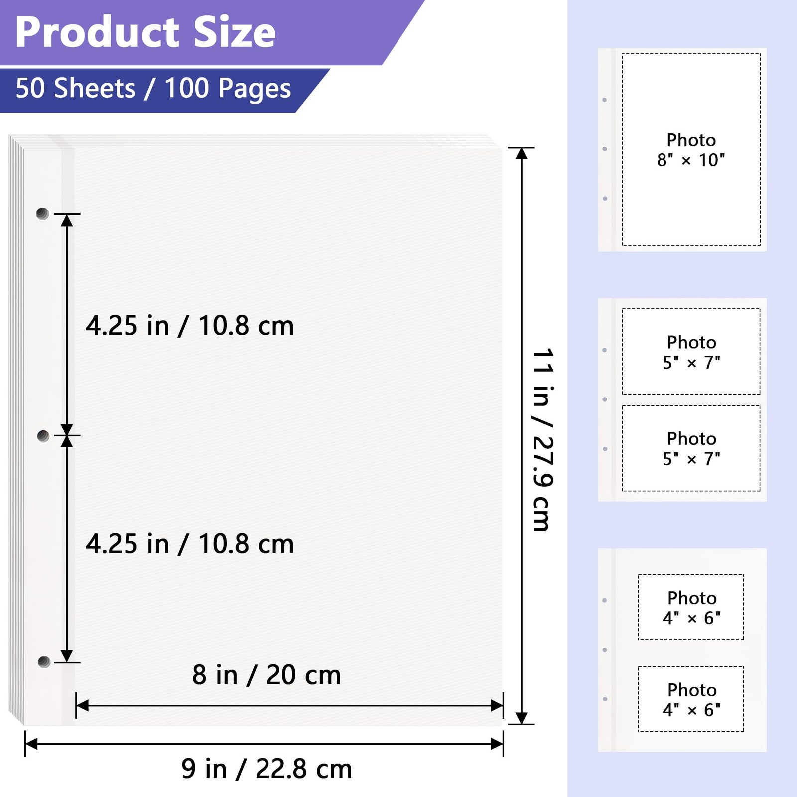Photo Album Refill Pages for 3 Ring Binder, 50 Sheets/100 Pages Self Adhesive...