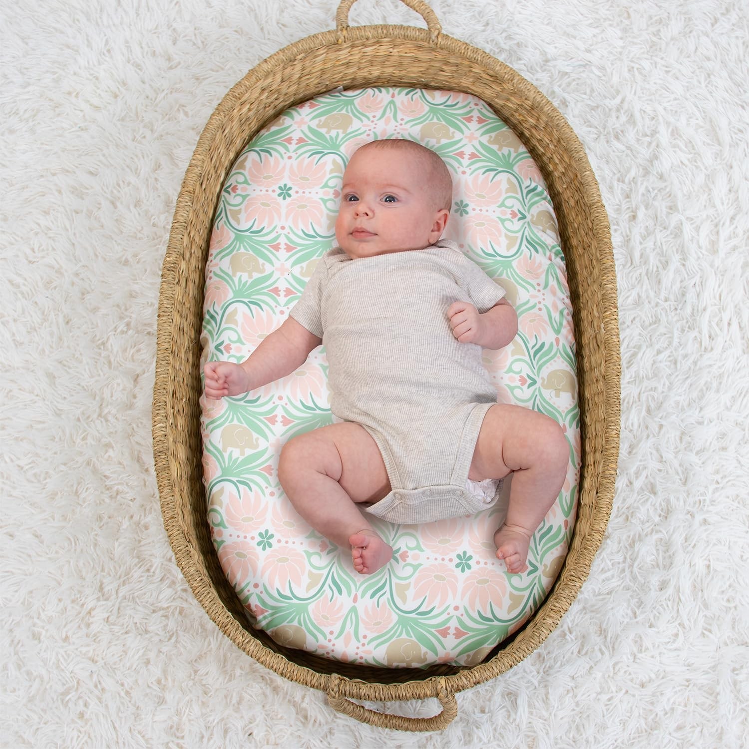 как выглядит Baby Bassinet Sheets 4-Pack for Girl - Soft, Oval Fitted Baby Girls Sheet, ... фото