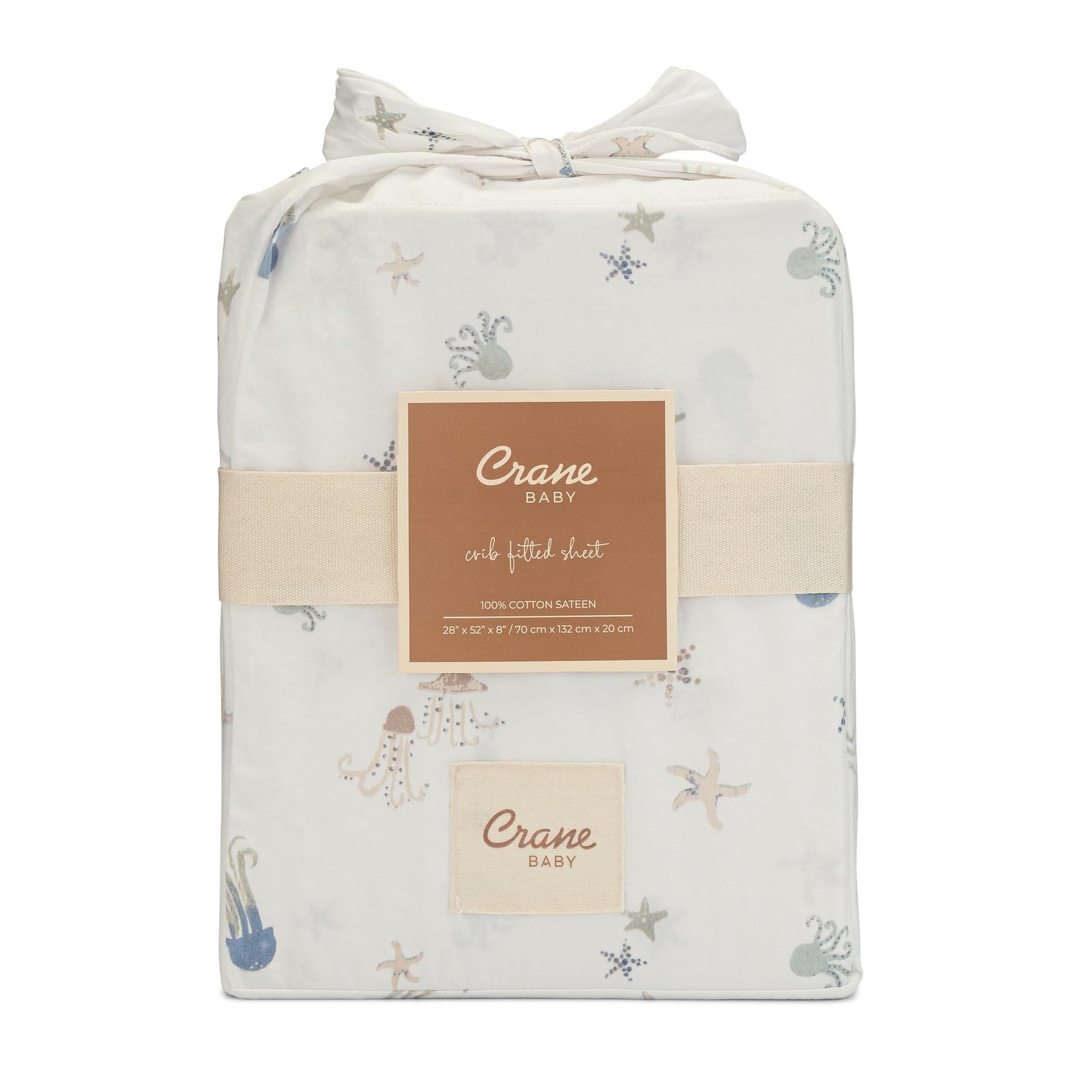 100 Cotton Under The Sea Fitted Crib Sheet with Jellyfish Design, Neutral Cr...