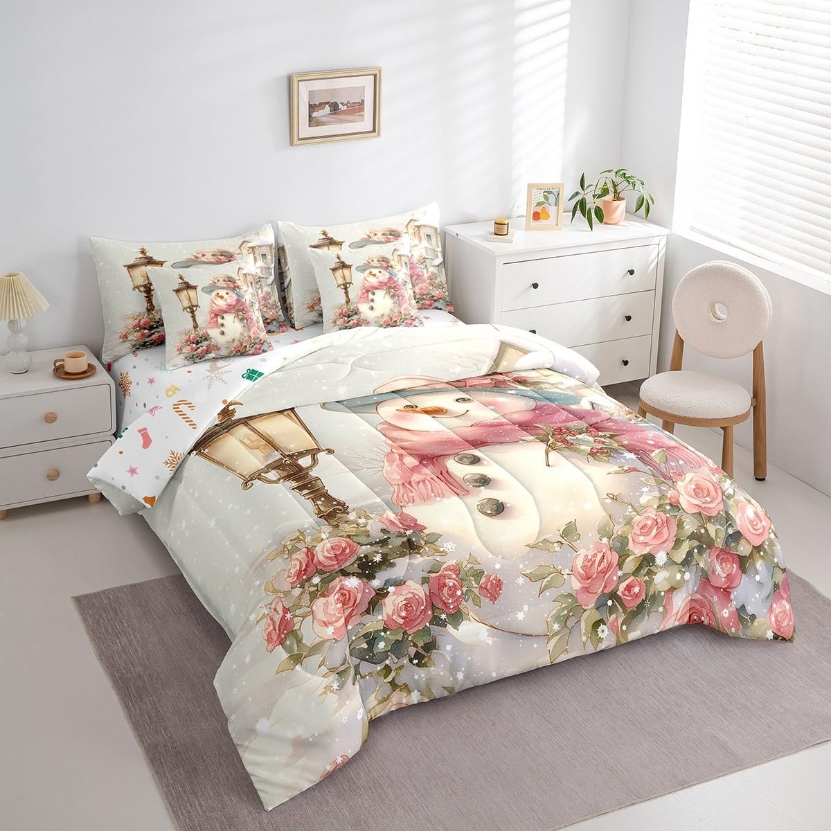 как выглядит Kids Christmas Comforter Set with Sheets Queen Size, Snowman 7 Pieces Bedding... фото