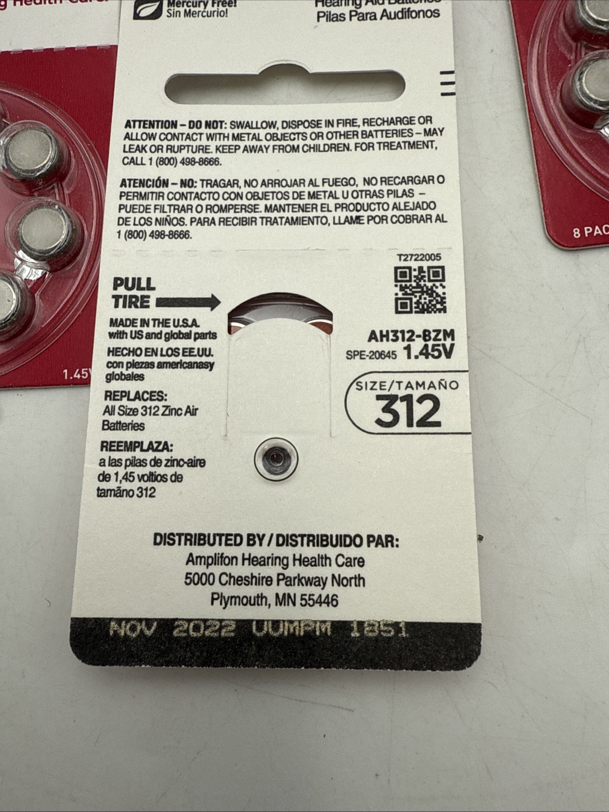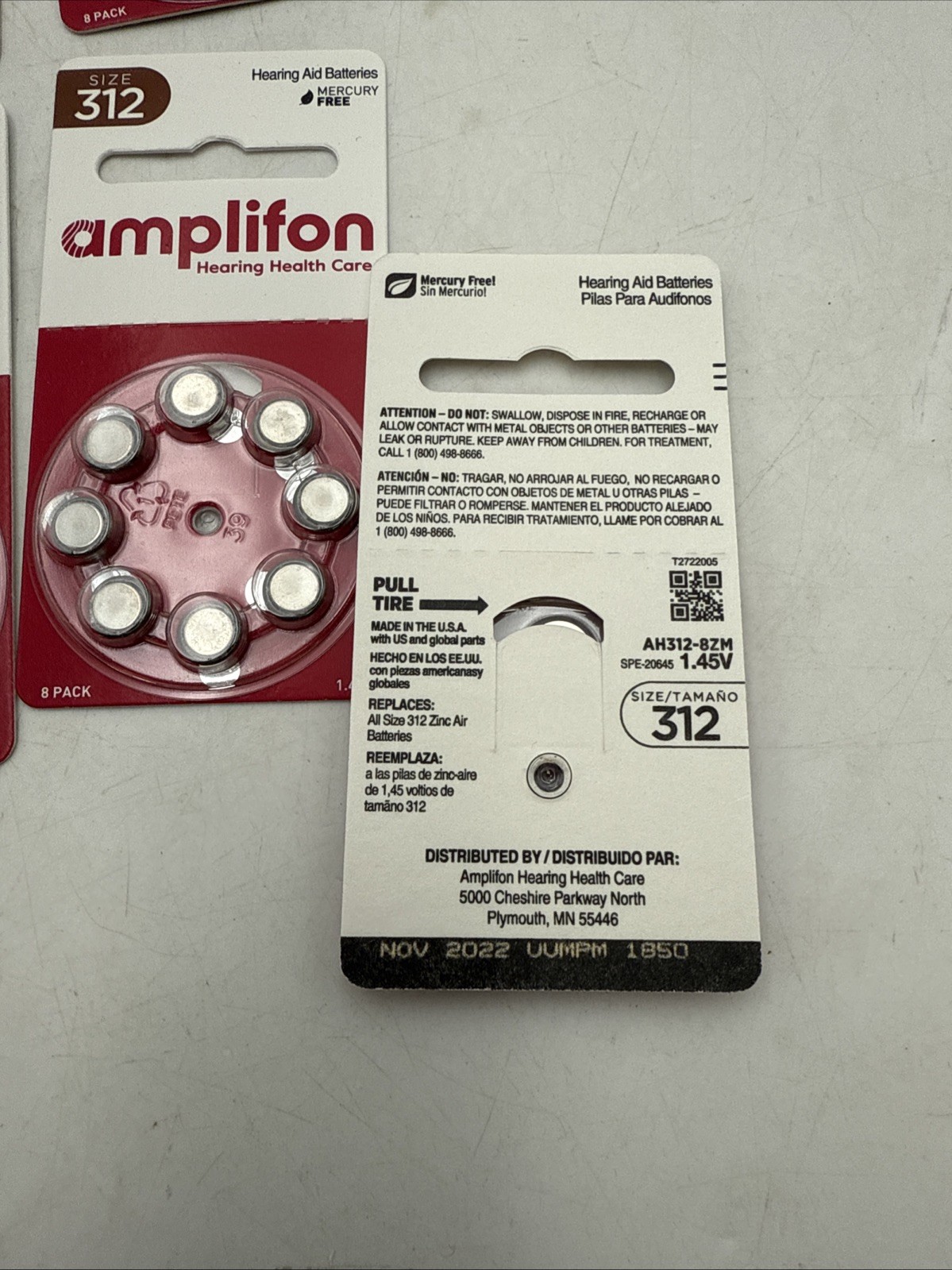 16 New Hearing Aid Batteries 8 Pack Size 312 Expired Nov. 2022 BRAND NEW 1.45V