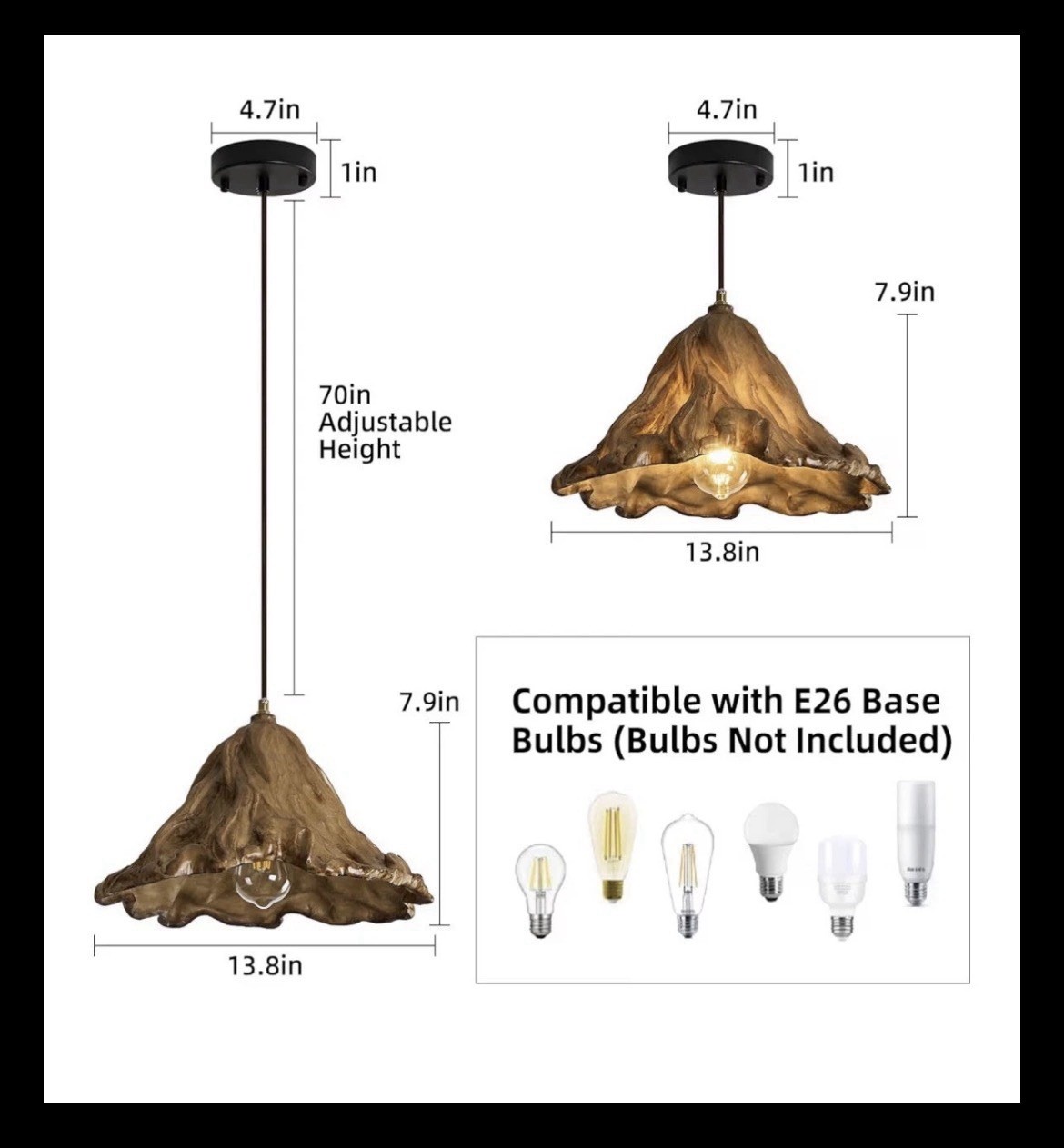 Light Source Type: LED, Halogen, Incandescent (Bulb not Included)