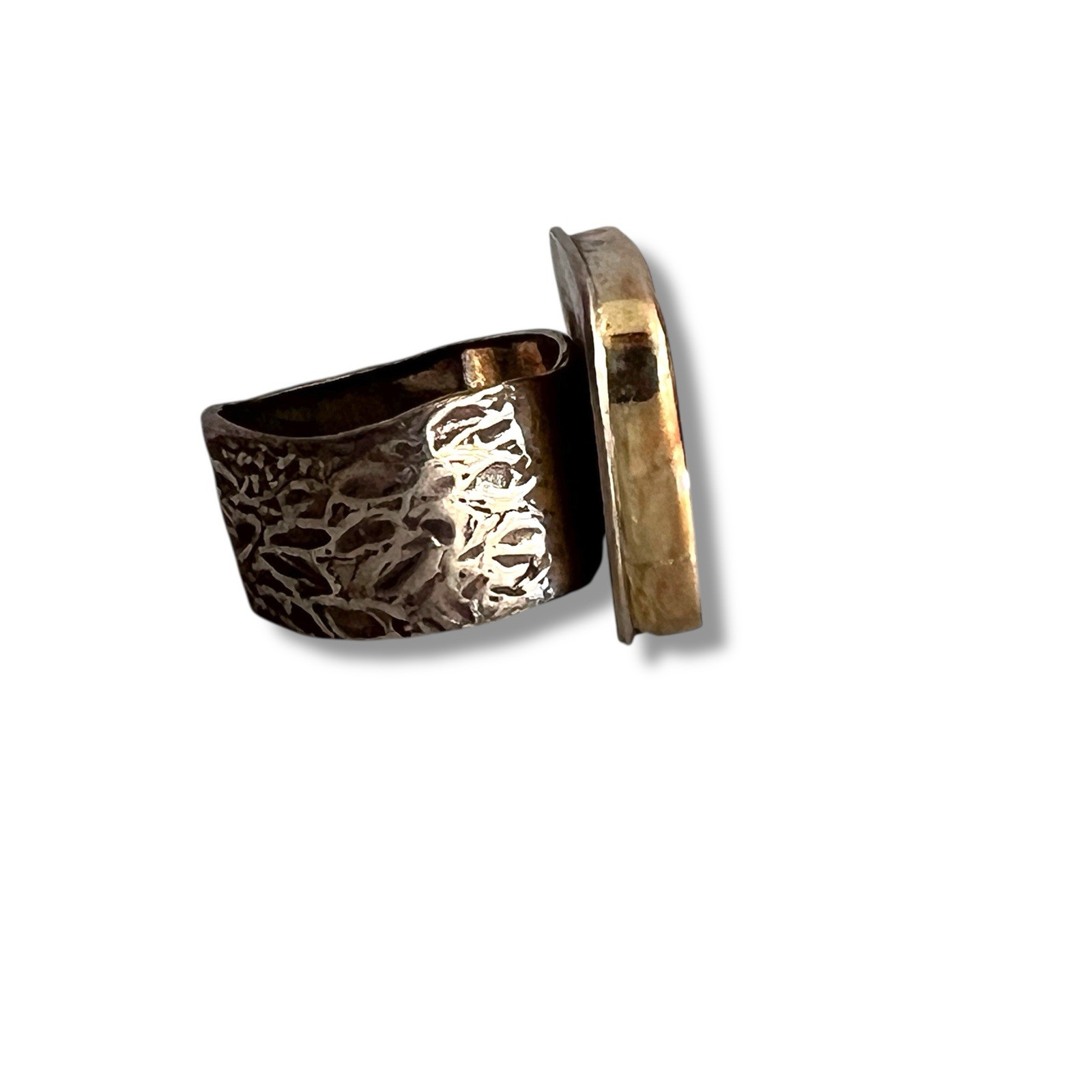 как выглядит Sterling Silver 925 Mother of Pearl Ring Artisan Brass Bezel Wide Band Size 7 фото