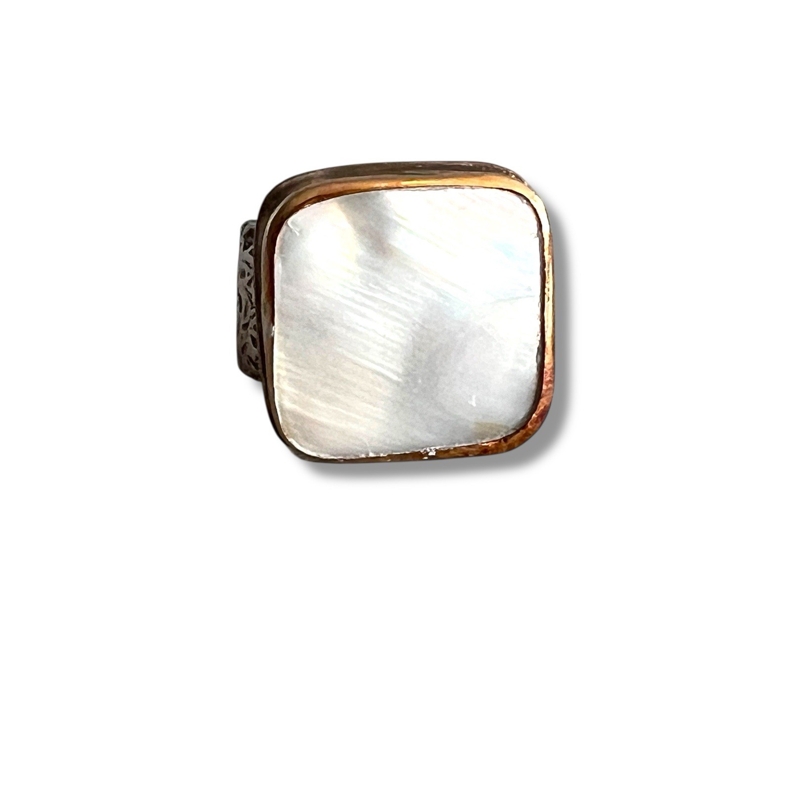 Sterling Silver 925 Mother of Pearl Ring Artisan Brass Bezel Wide Band Size 7
