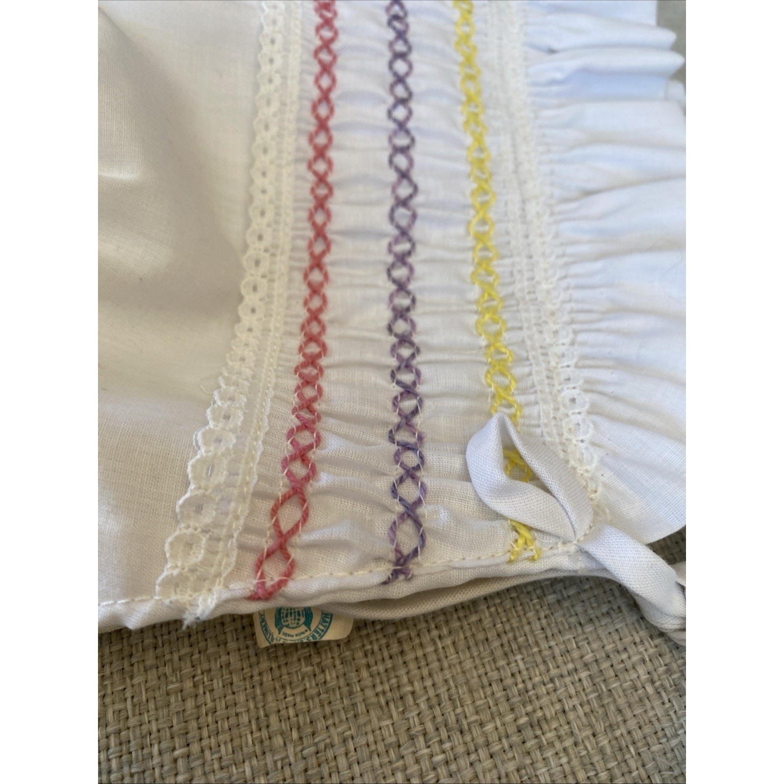 Vintage 1970s Baby Girl Bonnet Smocking Easter Ties Under Chin MCM USA Ruffles