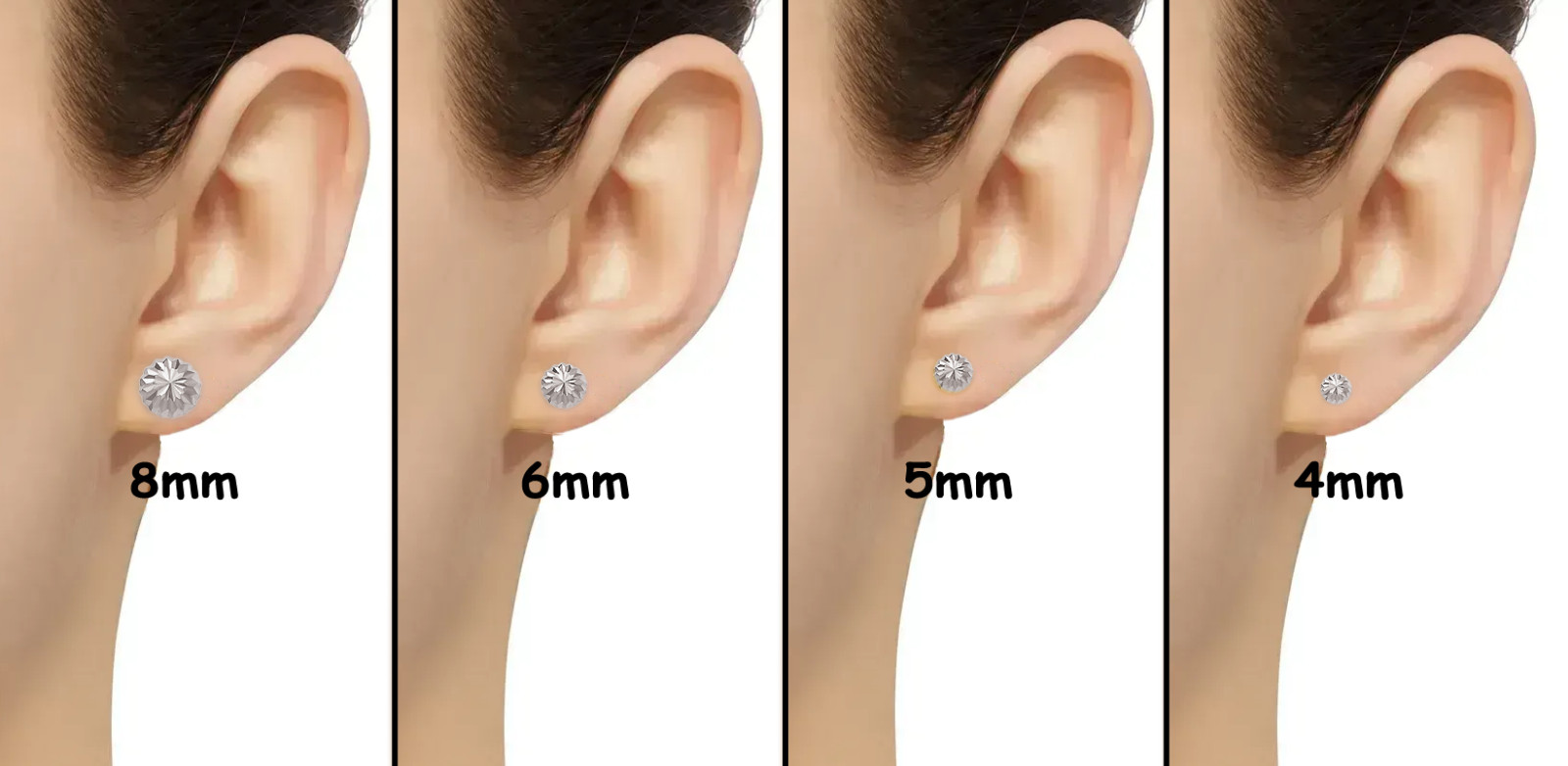 как выглядит 14K White Gold Half Round 5mm Ball Stud Earrings Diamond Cut Flat Back Studs фото