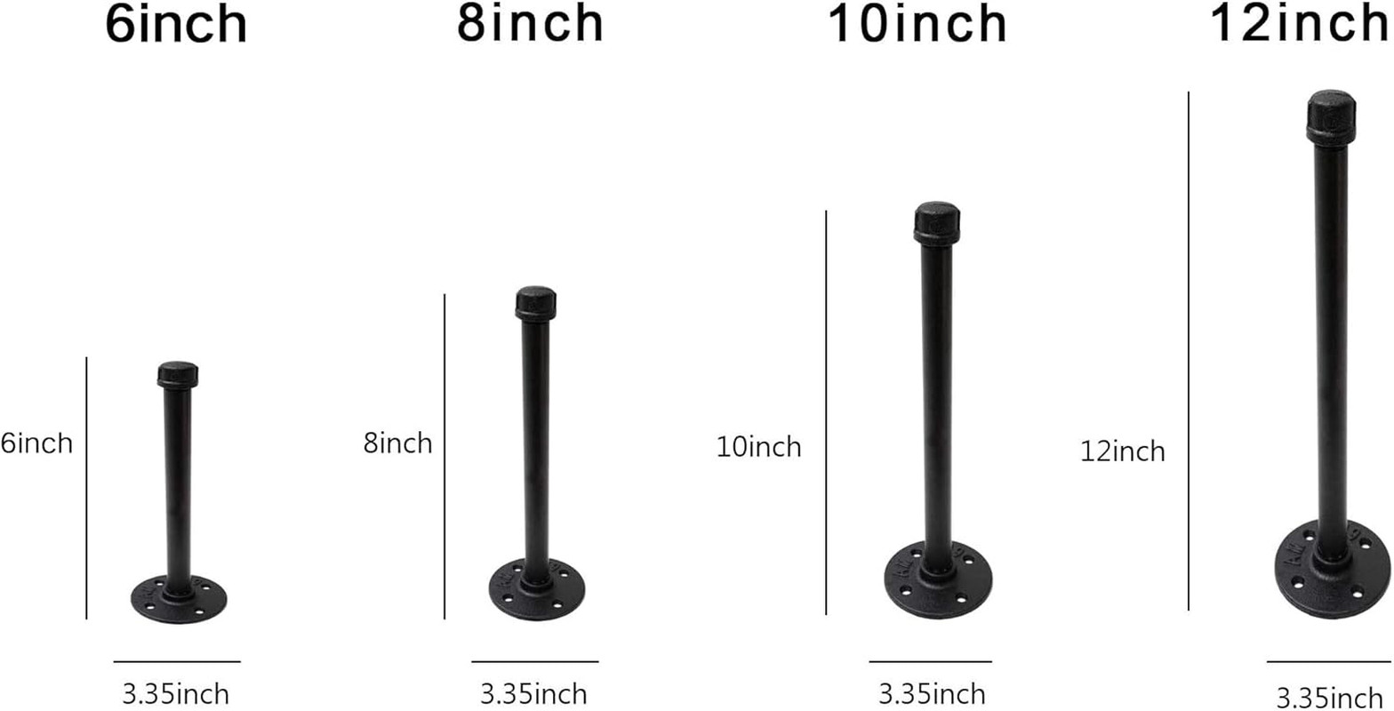1/2 Industrial Black Iron Pipe Shelf Brackets, Rustic Wall Mounted DIY Shelving