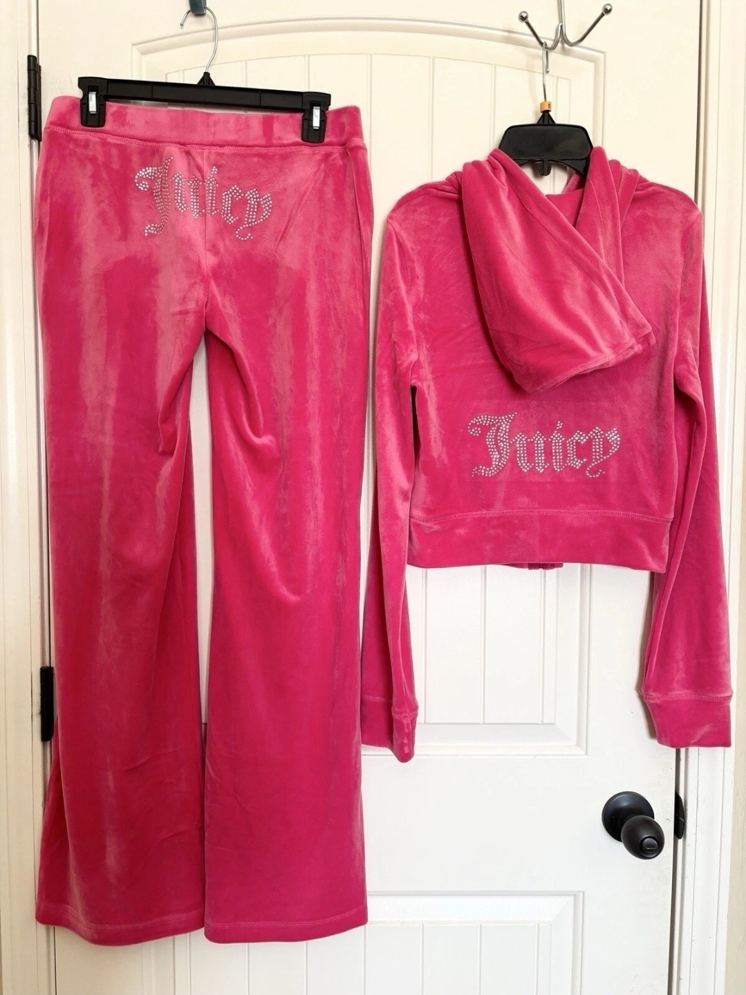 NWT Size XL Juicy Couture Velour Tracksuit Pink Party Hoodie Pants Set Y2K New