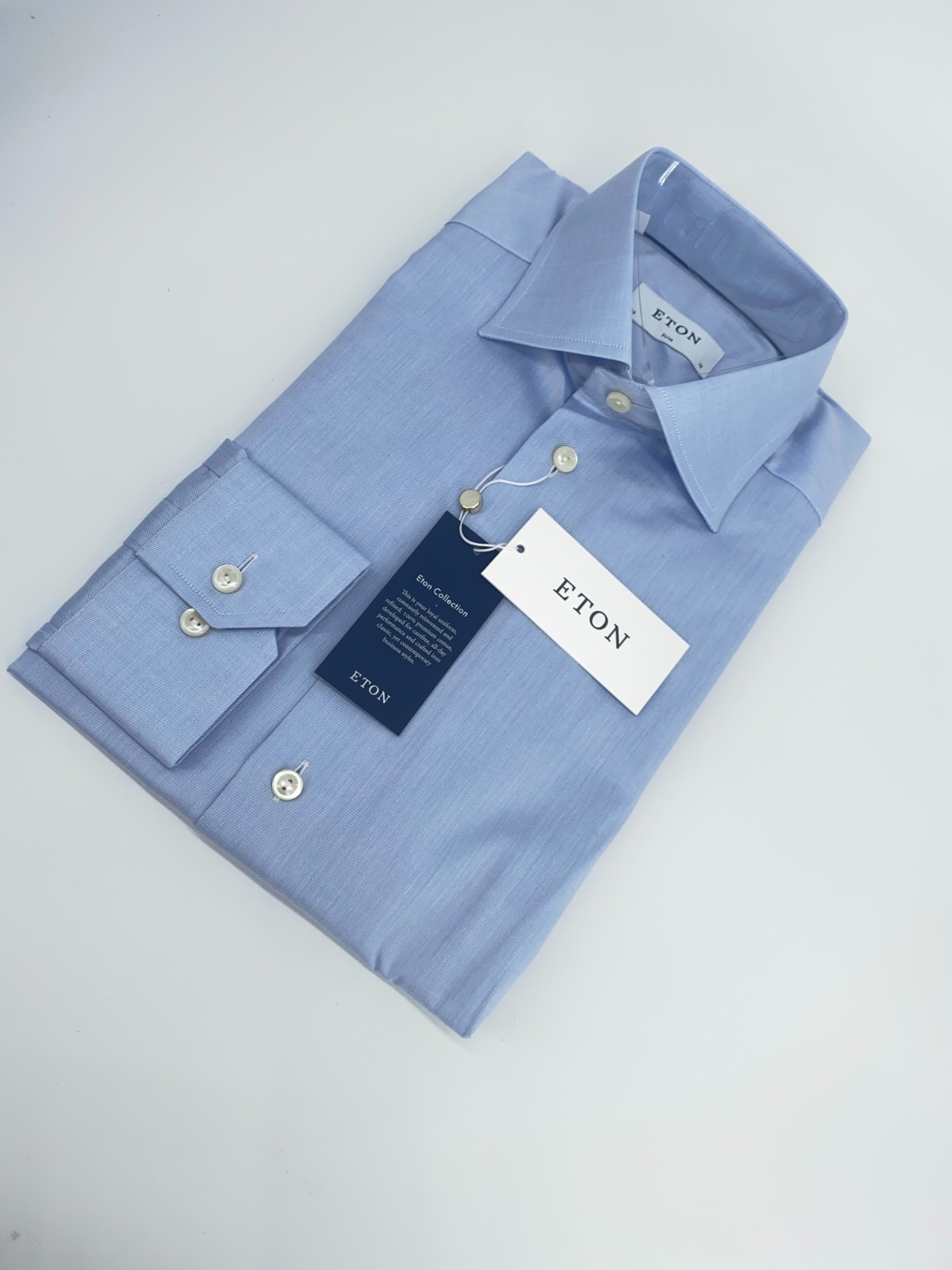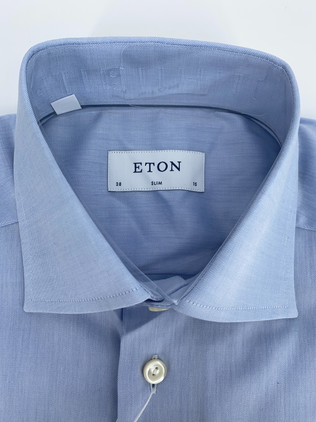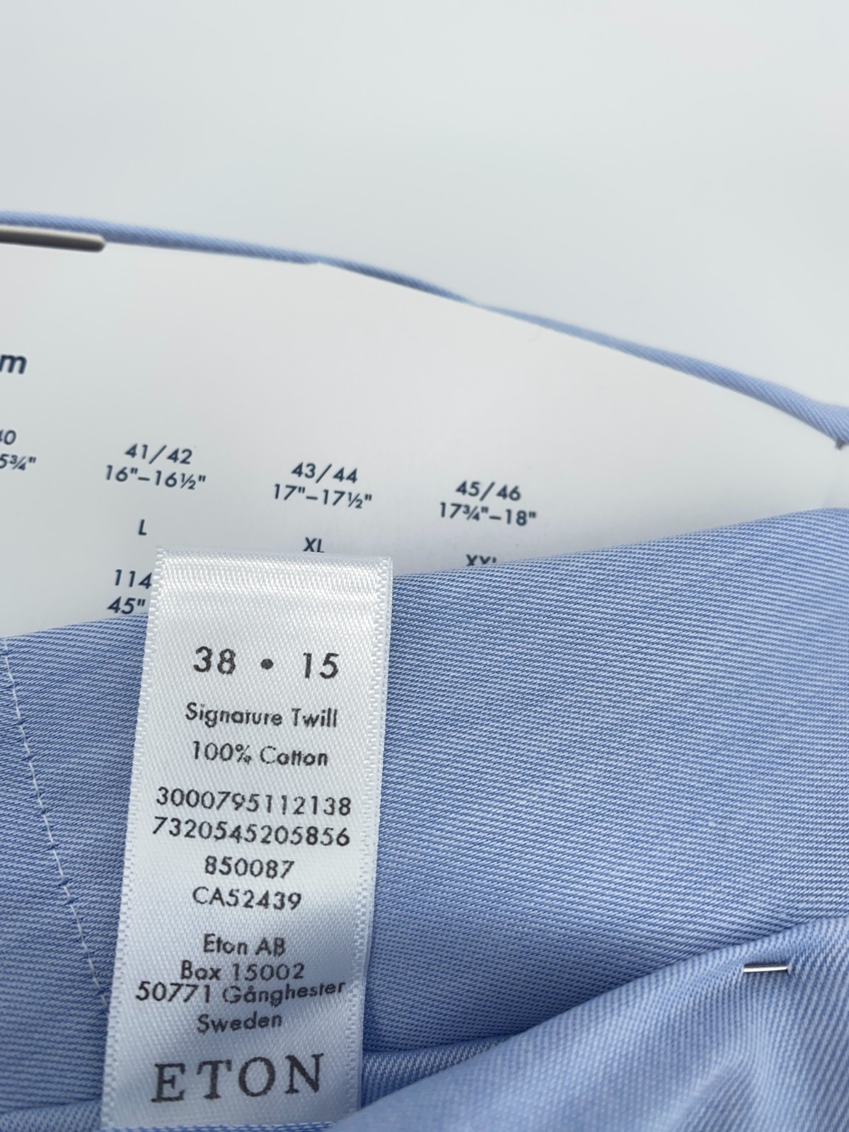 Eton Dress Shirt Mens S 15 - 38 Blue Signature Twill Slim Fit Collared Button Up