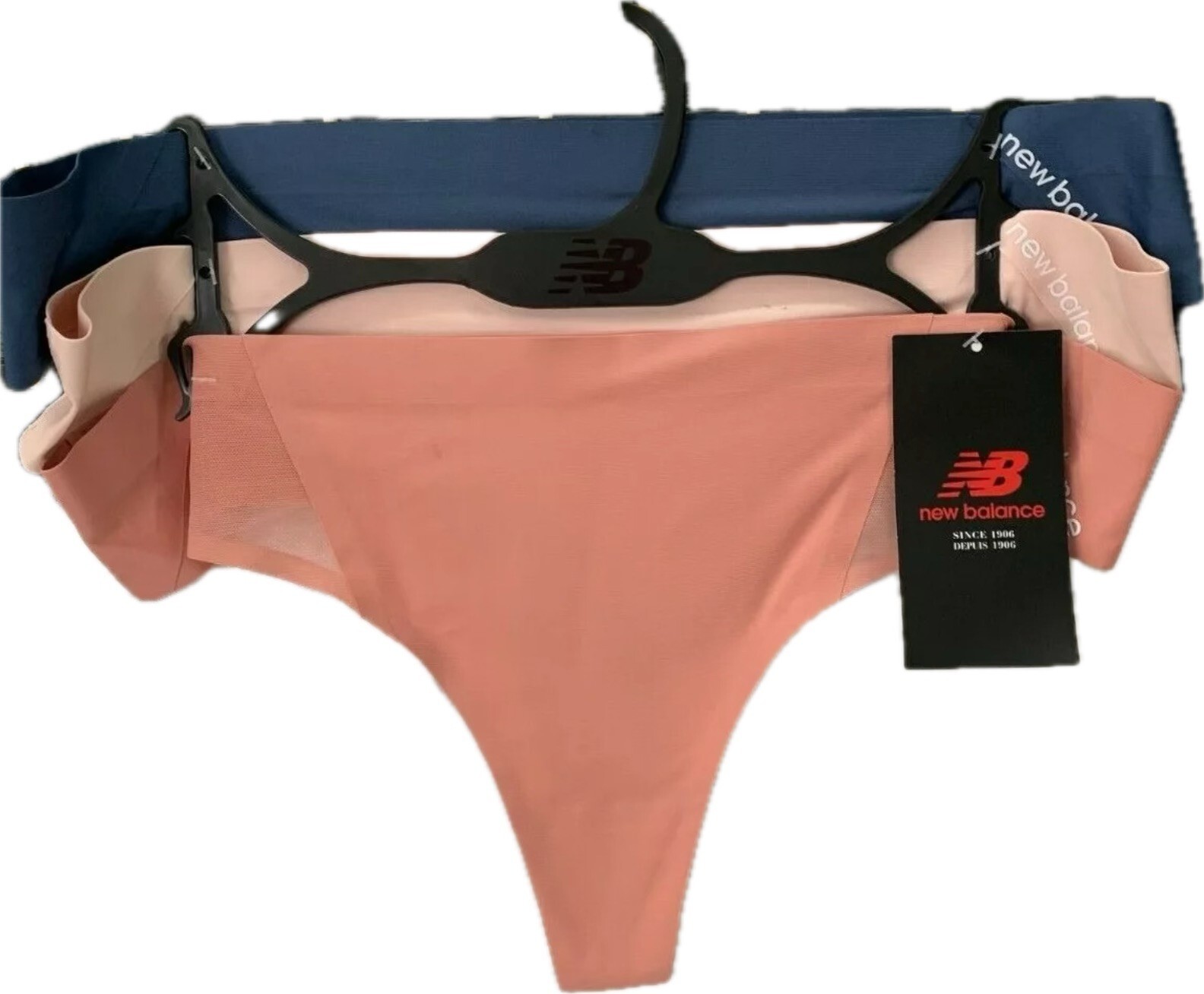 New Balance L Coral-Blush-Navy Seamless Barely There Feel Thong Panties-3 Pk