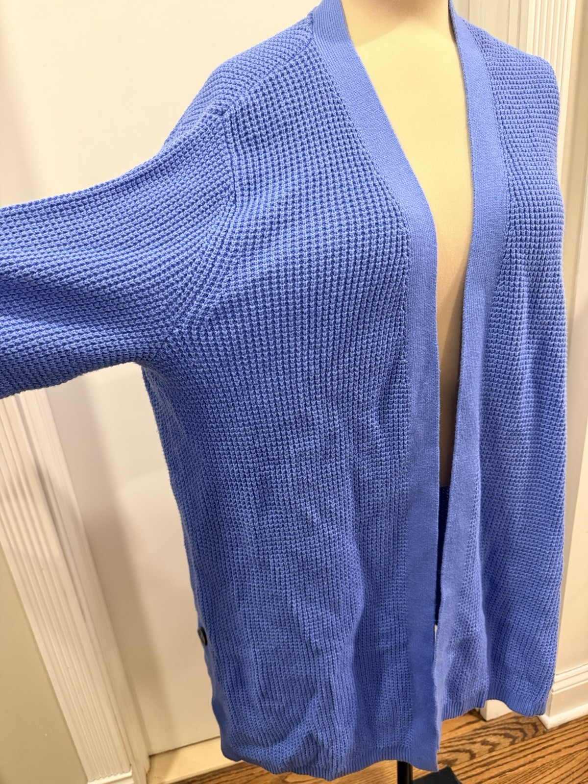 J. Jill Women's Blue Textured Open Front Cardigan Sweater Coastal Size L Petite