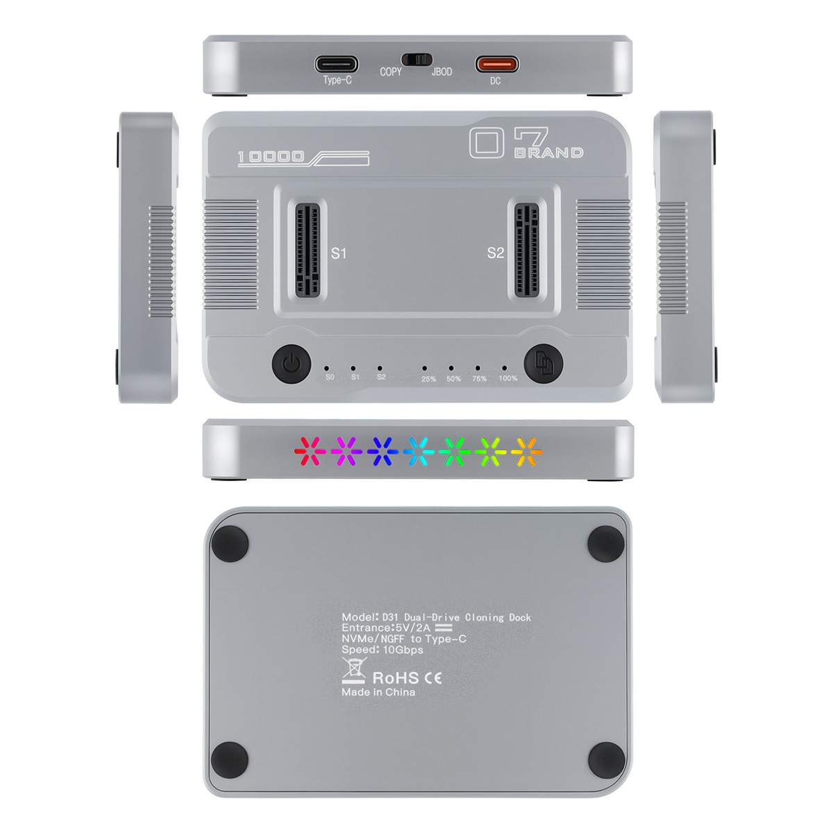 как выглядит NVMe M.2 Duplicator, M.2 SSD Cloner Dual-Bay Offline Clone, USB C to NVMe/SATA фото