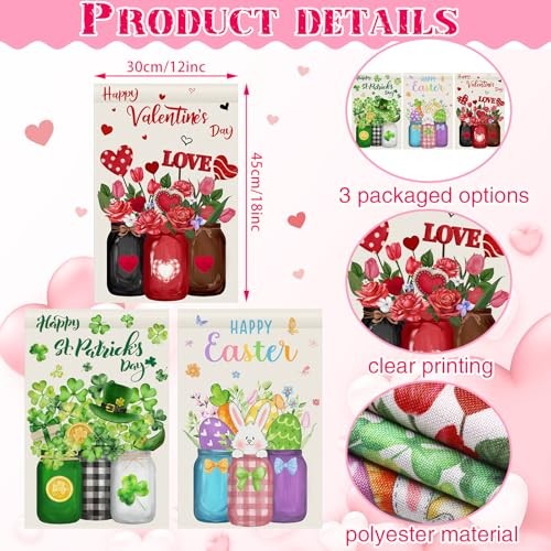 3 Pack 12 x 18 Happy Valentines Garden Flag St Patricks Day Easter Garden
