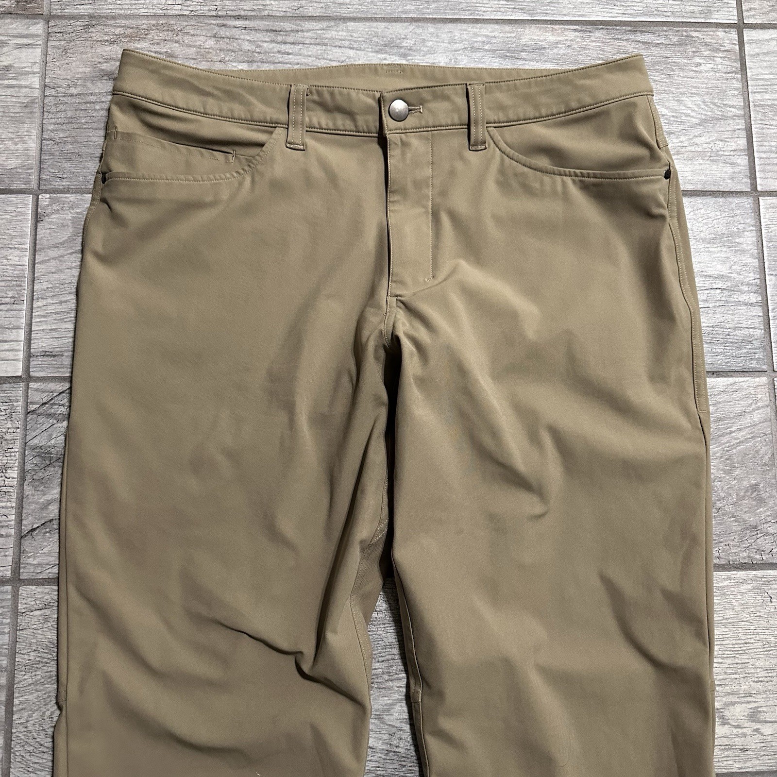 как выглядит Lululemon Warpstreme Pants Men 33 Tan ABC Classic 5 Pocket Straight Leg Stretch фото